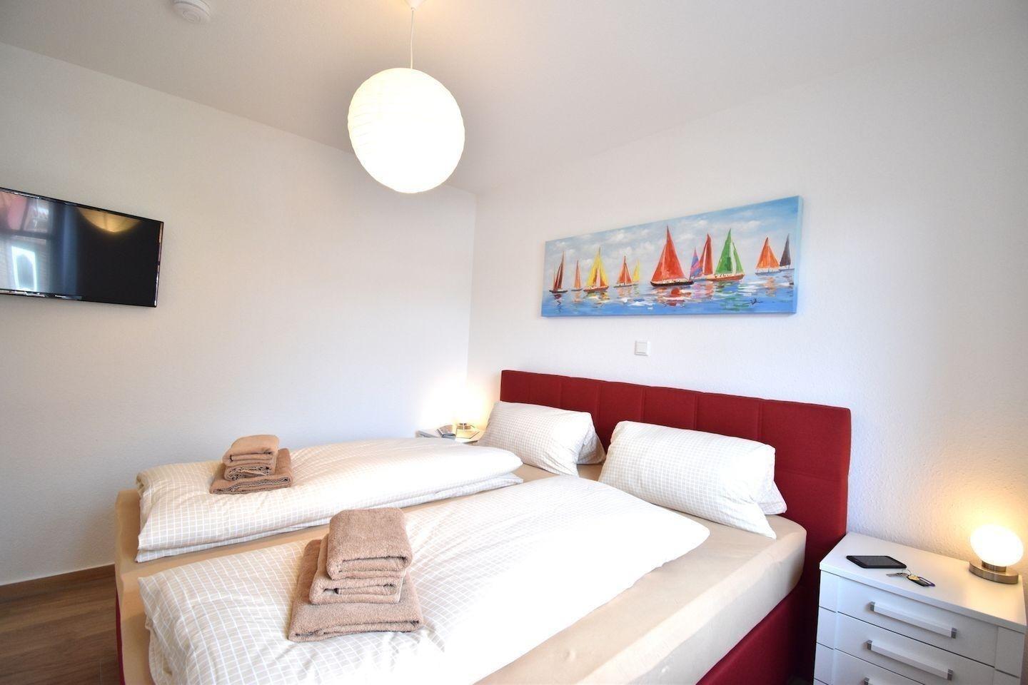 Die Wohnung verfügt über 2 Schlafräume, eines mit einem Doppelbett und das zweite mit zwei Einzelbetten.