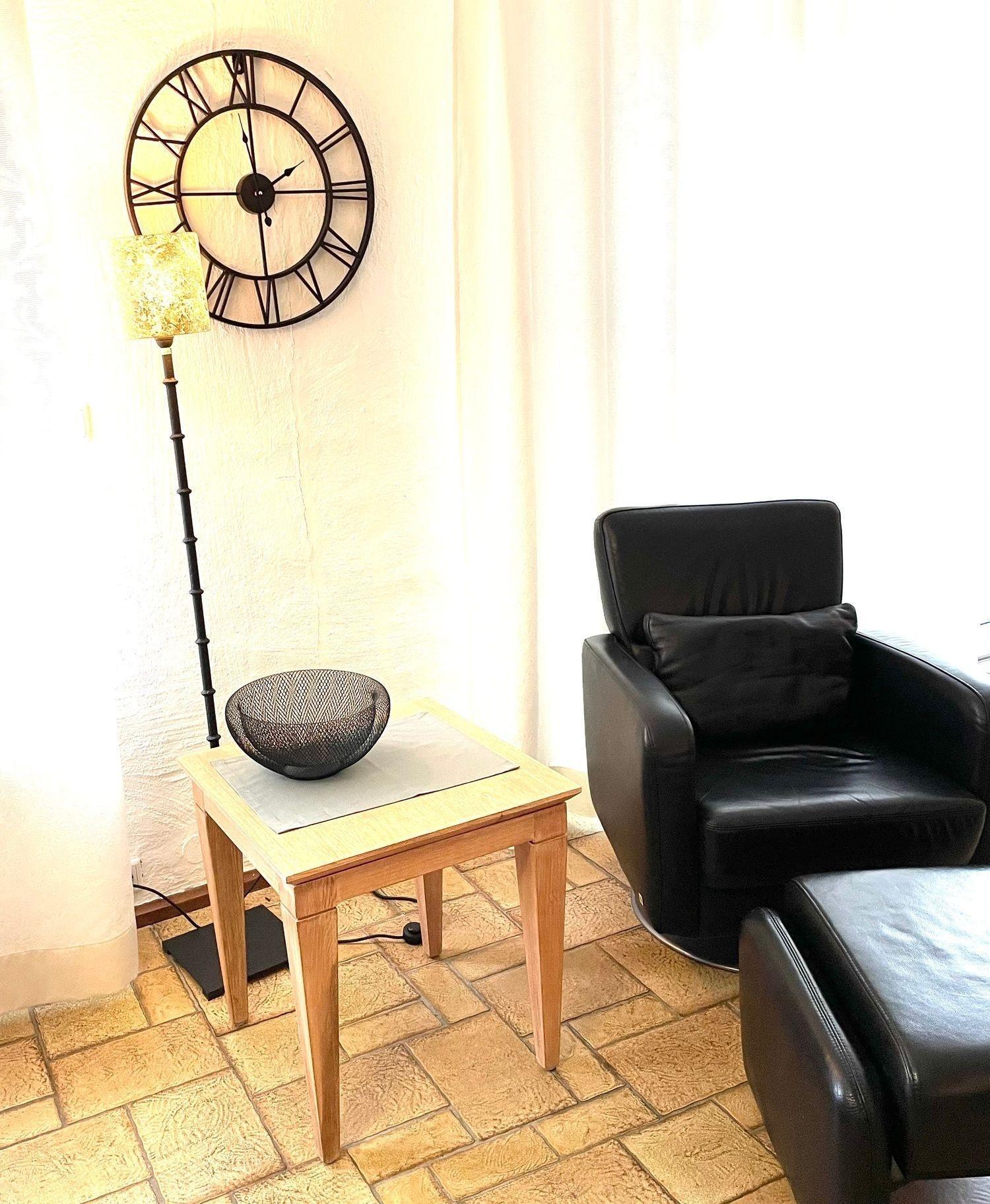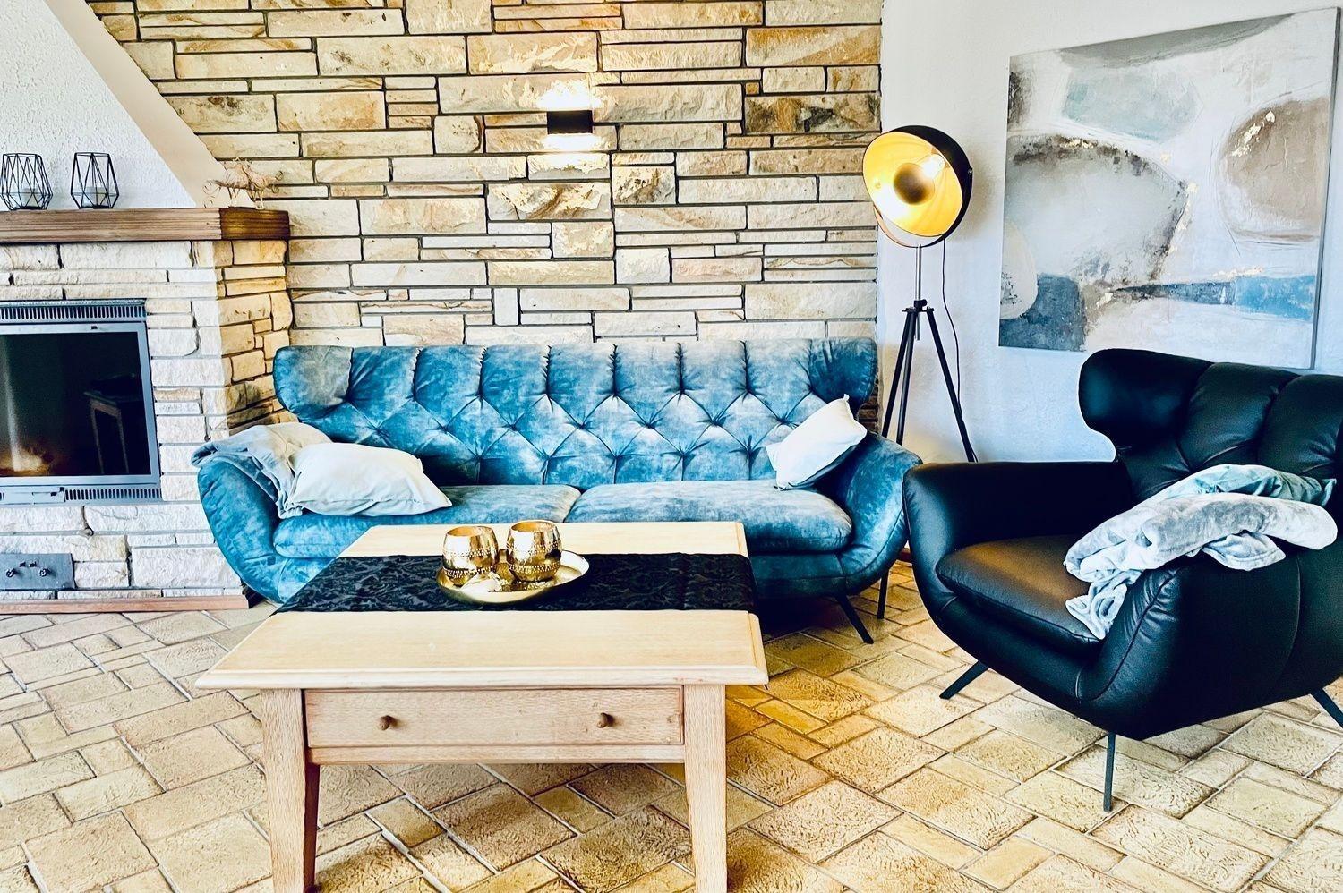 Zudem gibt es noch einen gemütlichen Drehsesseln von dem Sie auf Kamin, Smart Tv oder in den Garten schauen können.
