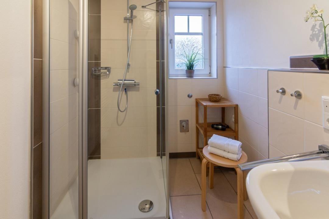 Die Terrasse mit Gartenmöbeln, Liegewiese, Sonnenliegen, Sonnenschirm und Windschutz lädt zum Entspannen ein. Weitere Annehmlichkeiten der Wohnung sind kostenloses WLAN, ein Privatparkplatz, eine Waschmaschine, ein Trockner, ein Bügeleisen, ein Bügelbrett, ein Wäscheständer, ein Safe, ein Ganzkörperspiegel, Feuermelder, ein Staubsauger, ein Verbandskasten, Fliegengitter und Reinigungsmittel. Eine eBike-Ladestation ist ebenfalls vorhanden.