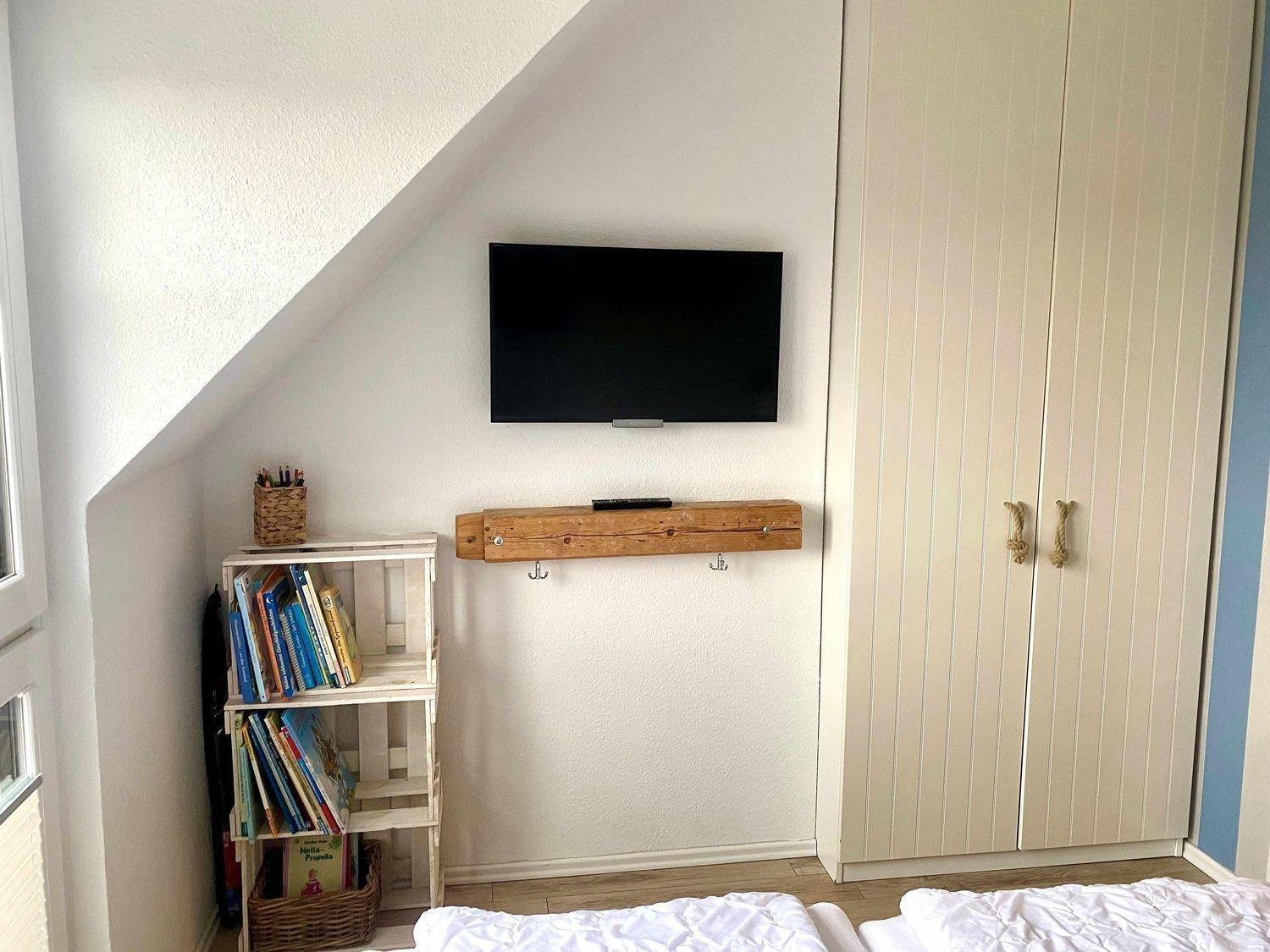 Im Wohnzimmer sowie in allen Schlafräumen gibt es einen Flachbildfernseher.