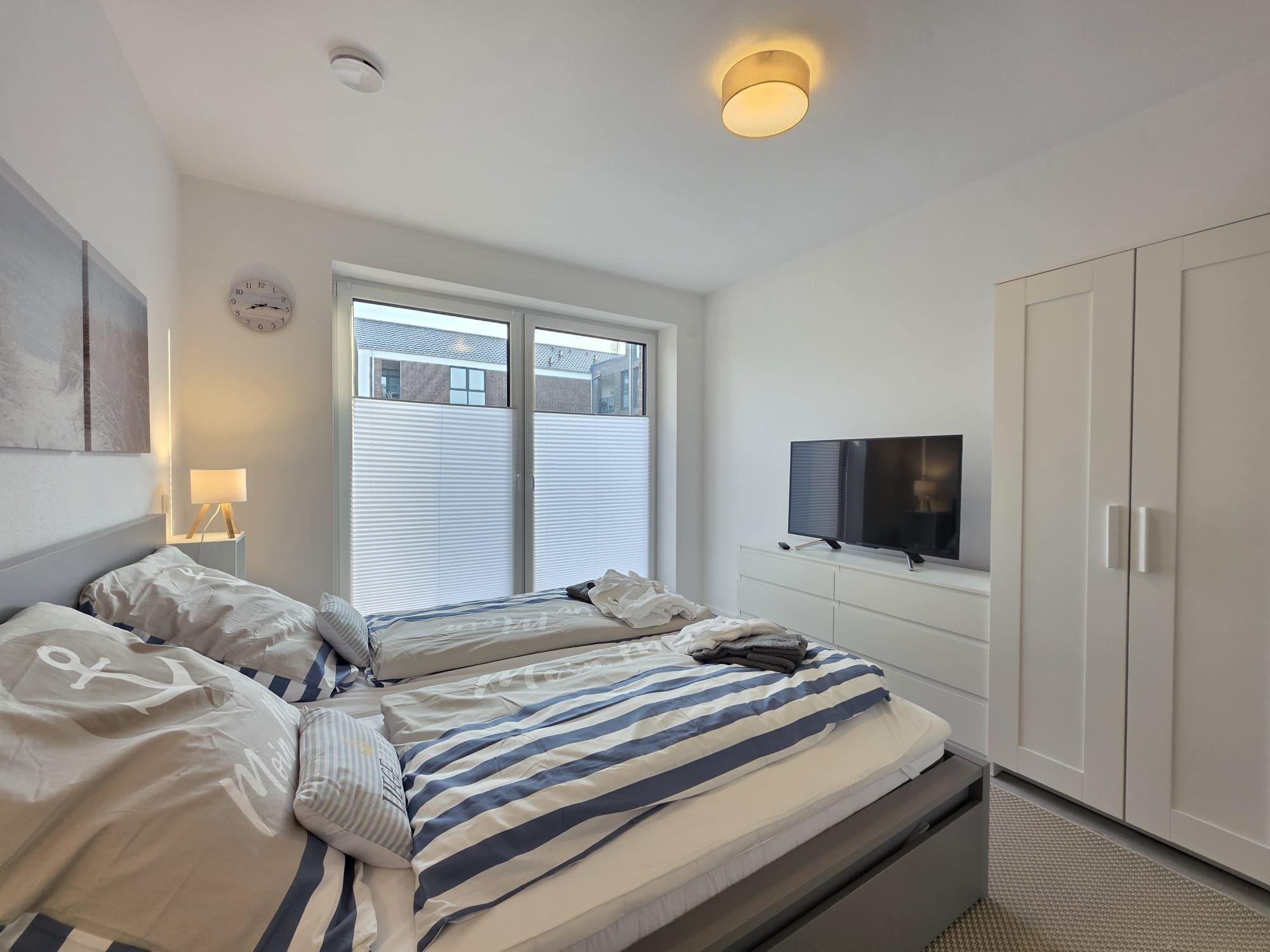 Die Ferienwohnung NordTroll ist eine moderne, stilvoll eingerichtete Erdgeschosswohnung in Norden, die 2025 fertiggestellt wurde. Mit 80 m² Wohnfläche bietet sie viel Platz zum Entspannen. Das Schlafzimmer verfügt über ein komfortables Bett (180 x 200 cm) und einen Flachbild-TV sowie direkten Zugang zur großen Terrasse. Das großzügige Badezimmer ist mit einer modernen, begehbaren Dusche ausgestattet und sorgt für ausreichend Tageslicht.