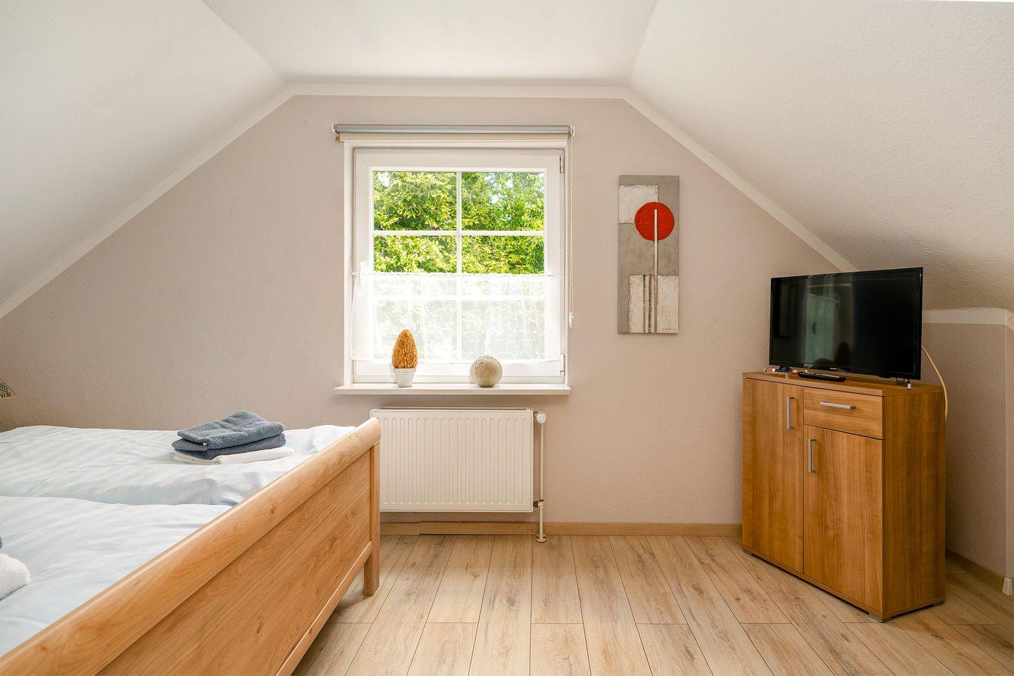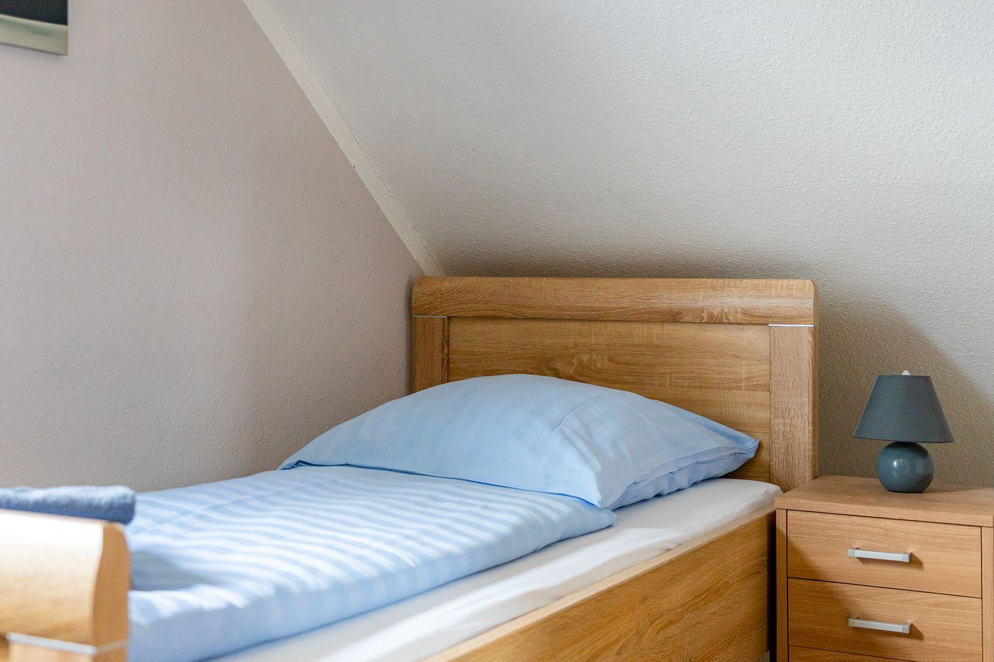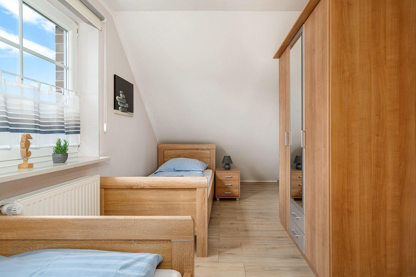 Im Obergeschoss befinden sich 2 weitere Schlafräume (1*1 Doppelbett und 1*2 Einzelbetten) und ein weiteres Duschbad. Die Schlafräume sind mit Laminat ausgelegt.