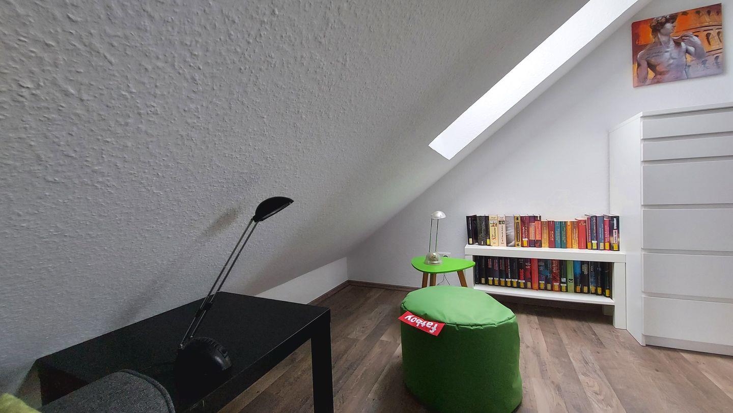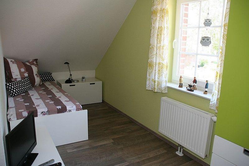 Das dritte Schlafzimmer ist möbliert mit 2 Einzelbetten (eines mit verstellbarem Lattenrost und speziell Rücken schonender thermosensibler Matratze). Hier finden kleine Gäste Spiele und Bücher vor sowie ein SAT-TV mit integriertem DVD-Player. Auch ein Kinderreisebett ist vorhanden.