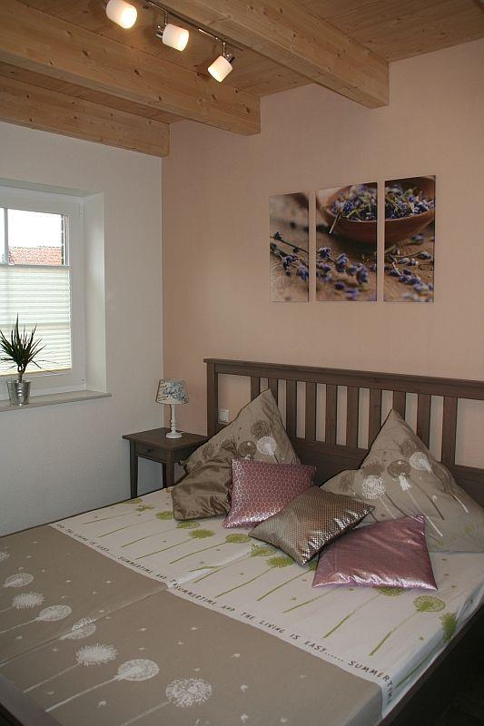 Im Obergeschoss befinden sich zwei Schlafzimmer, ein größeres mit Einbauschrank, Schminktisch und Doppelbett (verstellbare Lattenroste und speziell Rücken schonende Matratzen) und einem weiteren Smart-HD-Fernseher mit Soundsystem und integriertem Player wie im EG.
