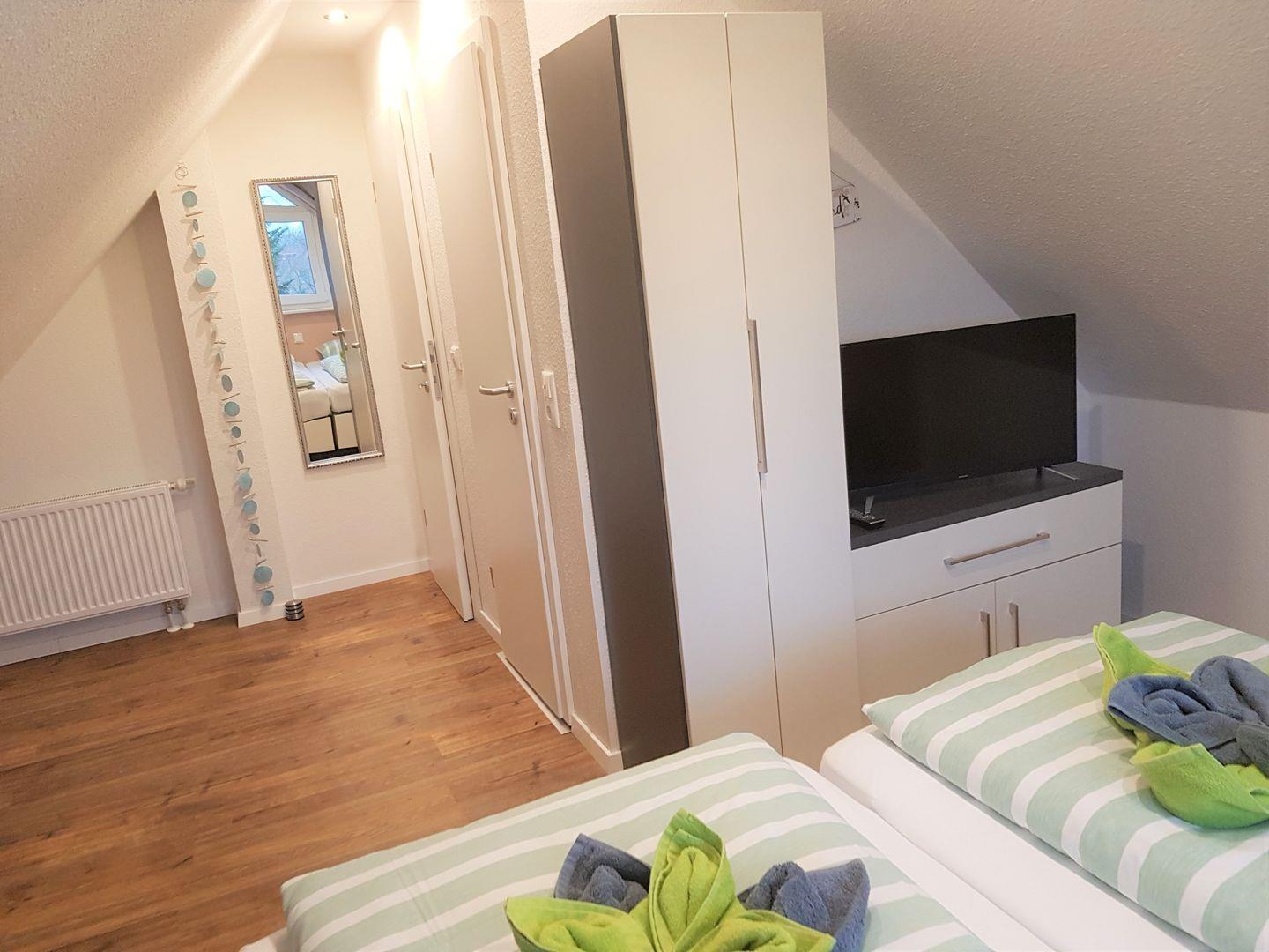 Genießen Sie Komfort auf zwei Etagen (1./2. OG) in dieser Nichtraucher-FeWo mit Süd-Balkon und Fußbodenheizung.