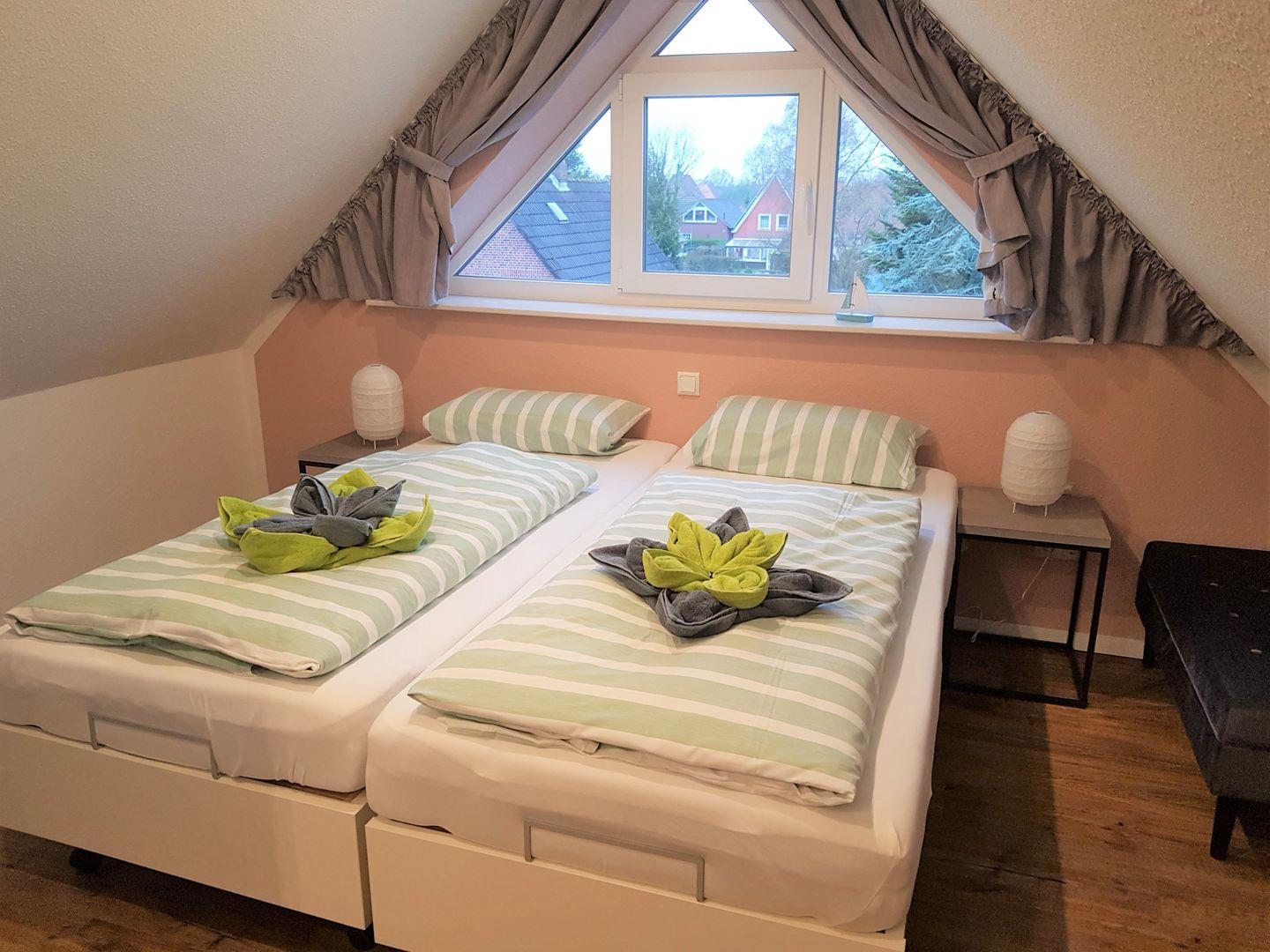 Das zweite Schlafzimmer befindet sich im 2. OG und kann Kindern und Jugendlichen als "eigenes Reich" dienen. Die Betten können hier bei Bedarf getrennt werden - ein zusätzliches, separates WC ist ebenfalls vorhanden.