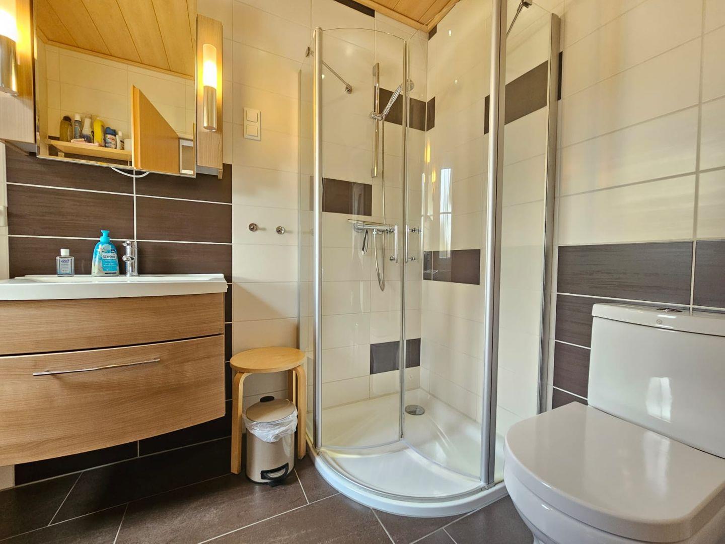 Erdgeschoss: Modernes Bad mit Dusche, WC und Waschmaschine.