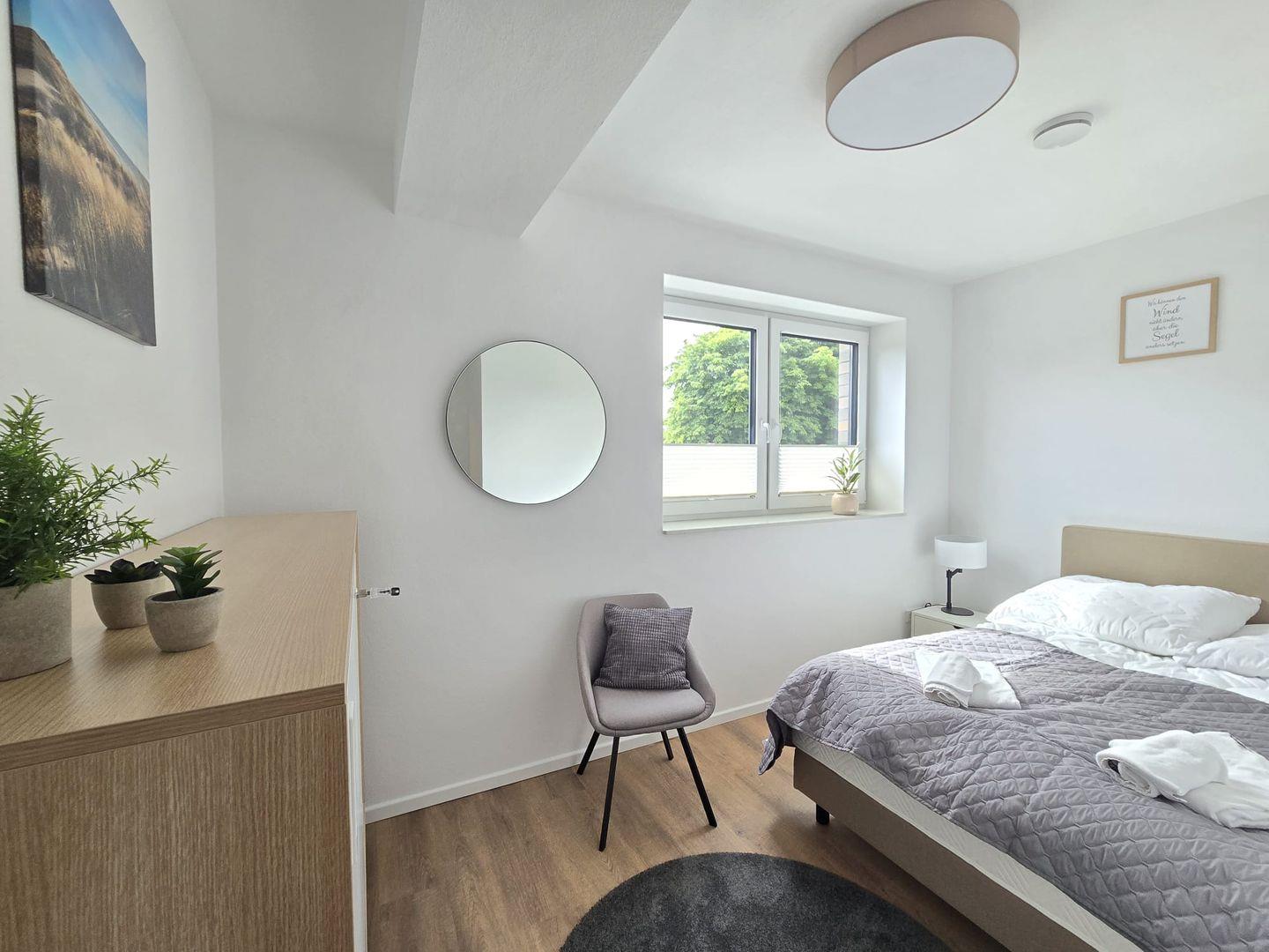 Die Wohnung bietet Platz für bis zu 4 Personen. Die Schlafzimmer sind komfortabel eingerichtet und sorgen mit hochwertigen Betten für erholsame Nächte. Die ruhige Lage unterstützt einen tiefen und angenehmen Schlaf.