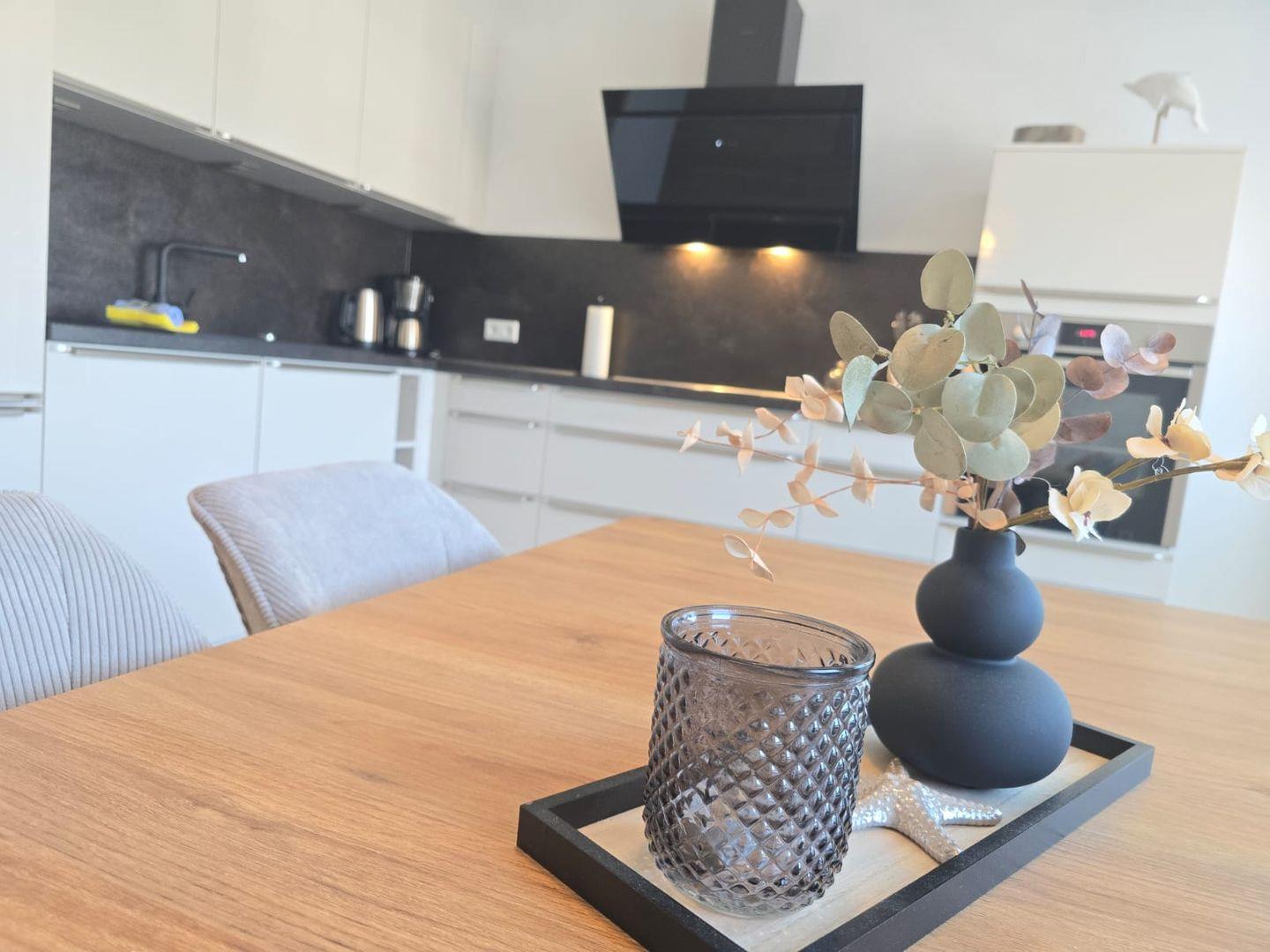 Die moderne Küche ist vollständig ausgestattet und ermöglicht Ihnen die unkomplizierte Zubereitung Ihrer Mahlzeiten. Ob ein ausgiebiges Frühstück oder ein entspanntes Abendessen, hier finden Sie alles, was Sie benötigen.