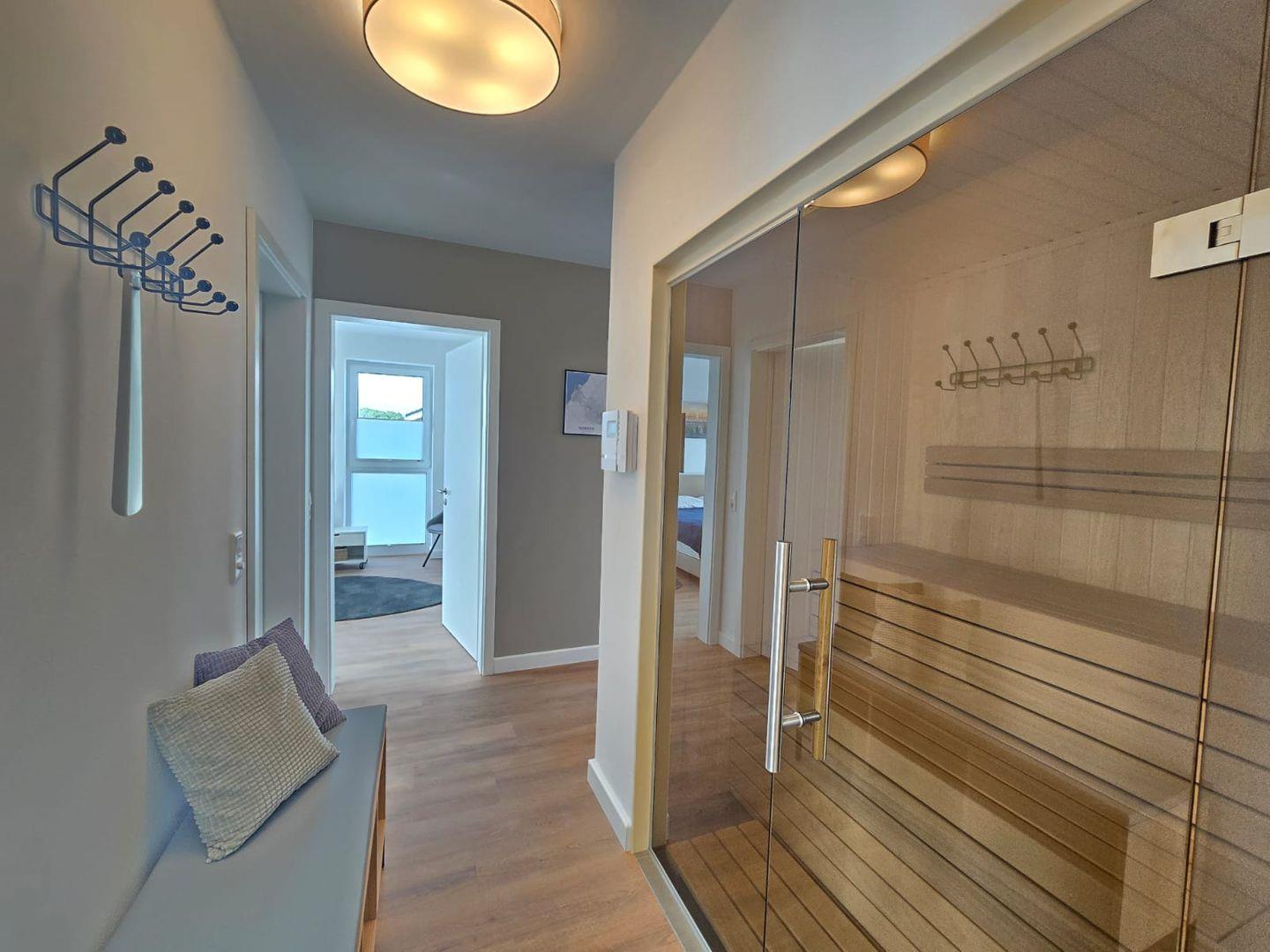 Ein weiteres Highlight ist die private Sauna, die Ihnen ganzjährig zur Verfügung steht. Sie bietet optimale Möglichkeiten, um nach Strandspaziergängen, Radtouren oder Ausflügen in die Region neue Energie zu tanken.
