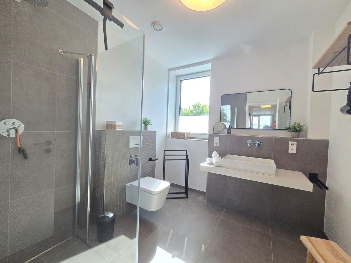 Die moderne Küche verfügt über alle wichtigen Geräte und Utensilien, um Ihren Aufenthalt so angenehm wie möglich zu gestalten. Hier bereiten Sie Ihre Mahlzeiten ganz nach Ihren Vorstellungen zu. Das Badezimmer ist hell, gepflegt und zeitgemäß ausgestattet und bietet alles, was Sie für einen komfortablen Aufenthalt benötigen.