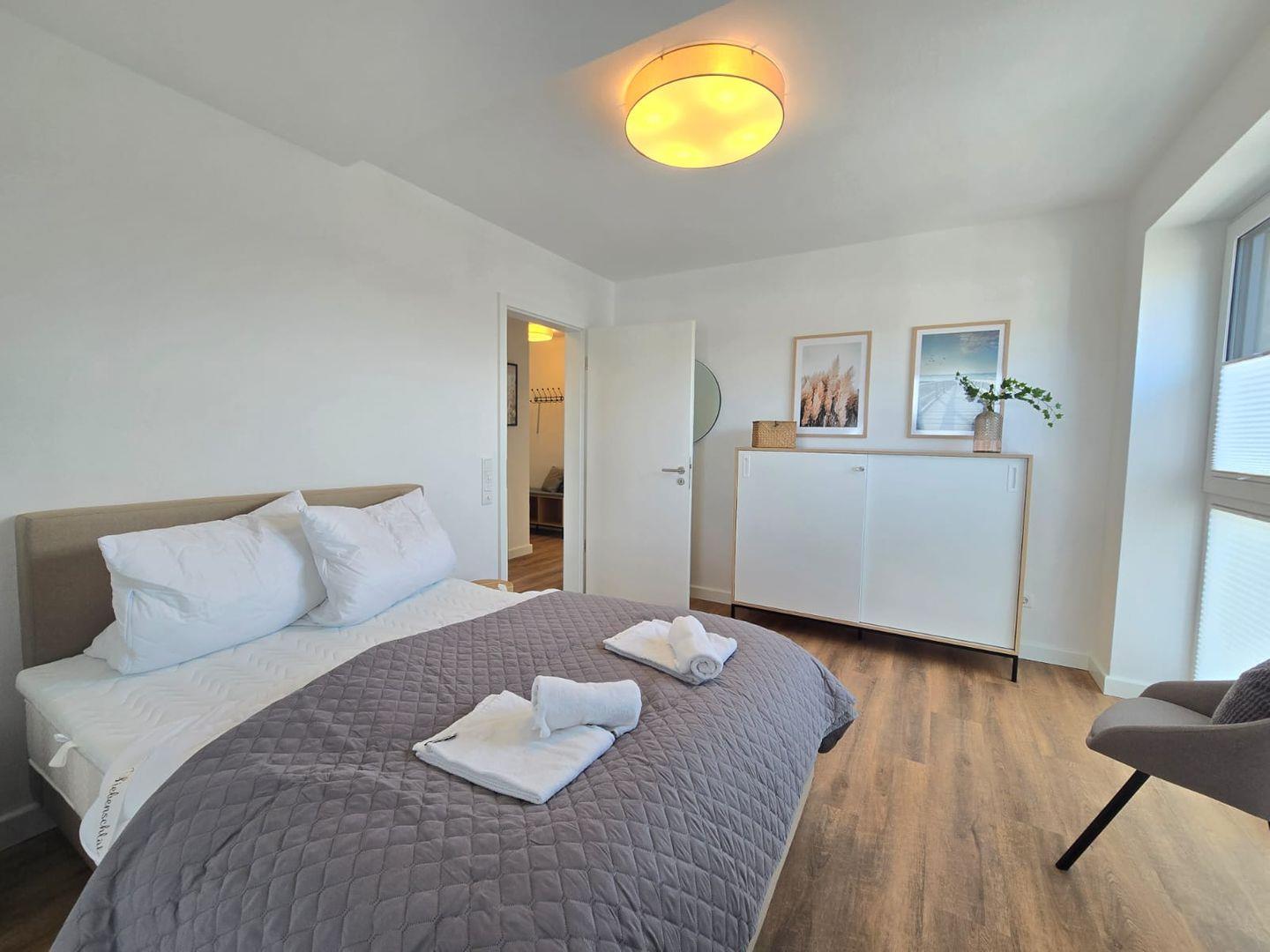 Die Ferienwohnung Hafenblick bietet Schlafmöglichkeiten für bis zu 6 Personen. Die Schlafzimmer sind modern und komfortabel ausgestattet, sodass Sie sich auf erholsame Nächte freuen können. Die ruhige Lage und die hochwertige Ausstattung sorgen für angenehmen Schlafkomfort.