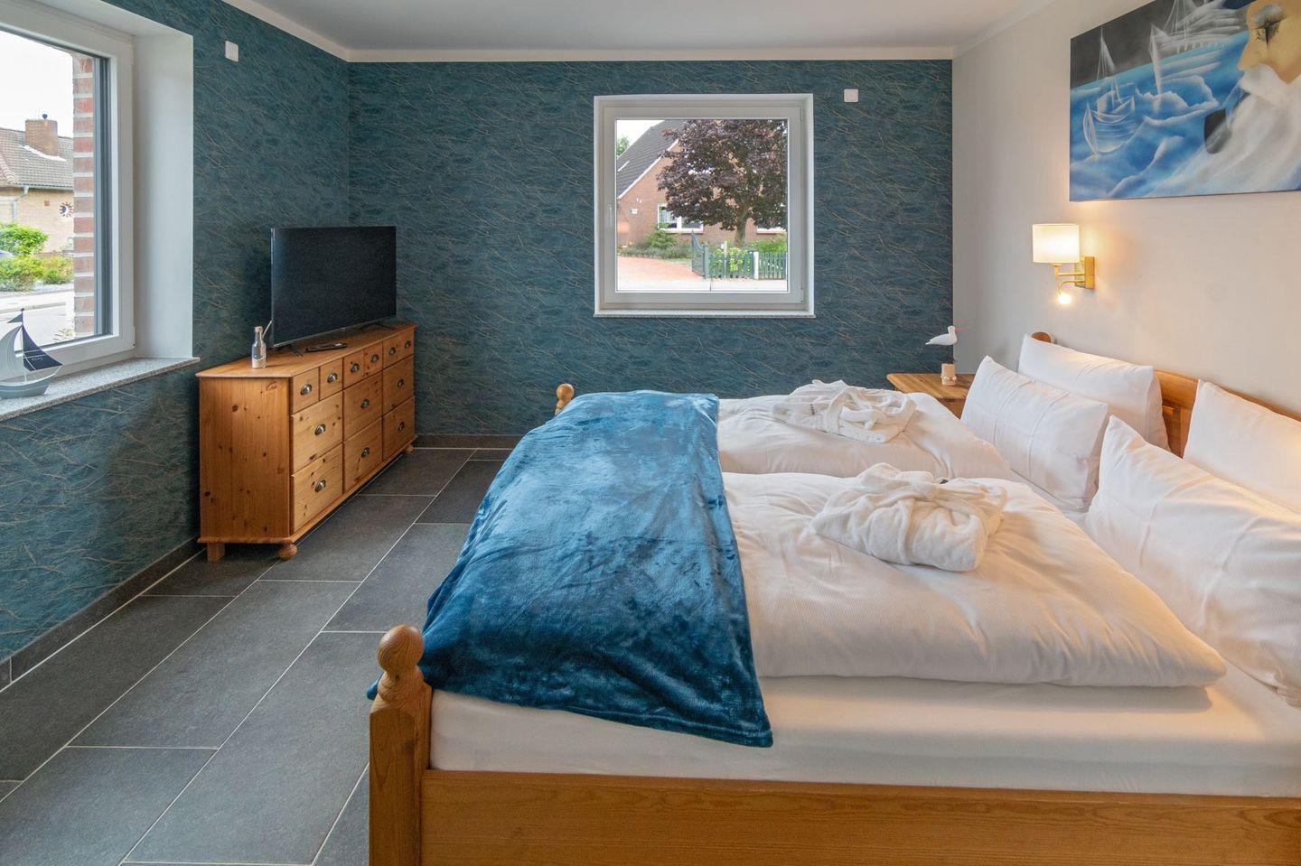 Drei luxuriöse Schlafzimmer: Jedes Zimmer ist ein Rückzugsort mit komfortablen Betten, hochwertiger Bettwäsche und ausreichend Stauraum.