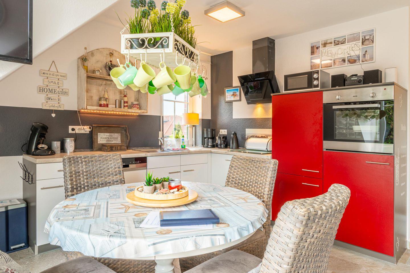Die voll ausgestattete Küche mit Herd, Backofen, Spülmaschine, Mikrowelle und Kühlschrank bietet alles, was du brauchst. Eine Kaffeemaschine und ein Wasserkocher sorgen für den perfekten Start in den Tag.