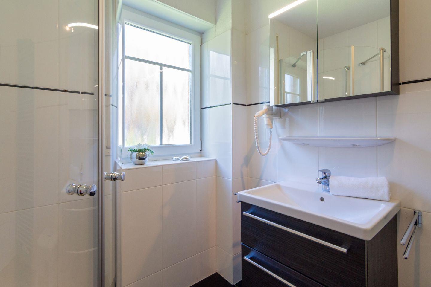 Ein besonderes Highlight der "Frisiaperle" ist die Vielzahl an Unterhaltungsmöglichkeiten, die Ihnen zur Verfügung stehen. Nutzen Sie die zwei Fernseher mit Satellitenanschluss, die HiFi-Anlage und den DVD-Player für gemütliche Abende. Eine WLAN-Verbindung ist ebenfalls vorhanden, sodass Sie auch während Ihres Aufenthalts mit Familie und Freunden in Kontakt bleiben können. Für die entspannenden Momente bietet das Badezimmer eine Dusche sowie einen Haartrockner und Kosmetikspiegel.