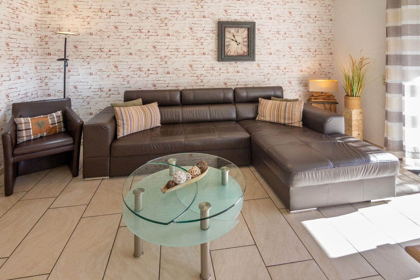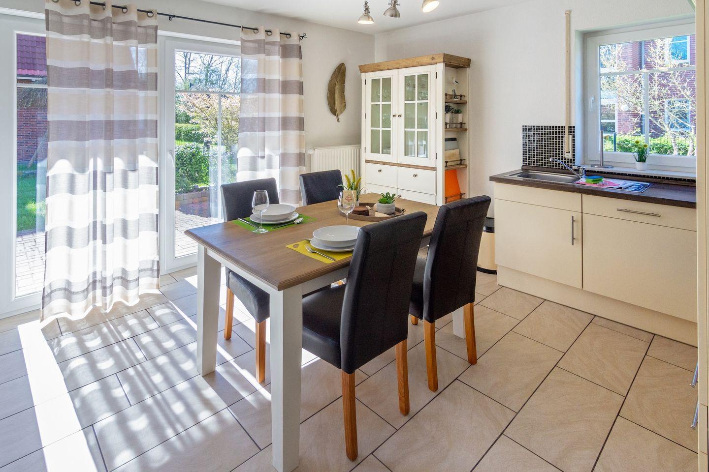 Die große Terrasse lädt dazu ein, die frische Luft zu genießen, während Sie die Kinder auf der Liegewiese im Garten spielen sehen. Das Außengelände ist ebenfalls mit Gartenmöbeln ausgestattet, so dass Sie die schönen Tage im Freien genießen können. Ein Strandkorb und ein Sonnenschirm sorgen dafür, dass Sie auch im Freien gut geschützt sind. Die kinderfreundliche Ausstattung umfasst unter anderem ein Babybett sowie einen Hochstuhl, sodass die kleinen Gäste bestens versorgt sind.