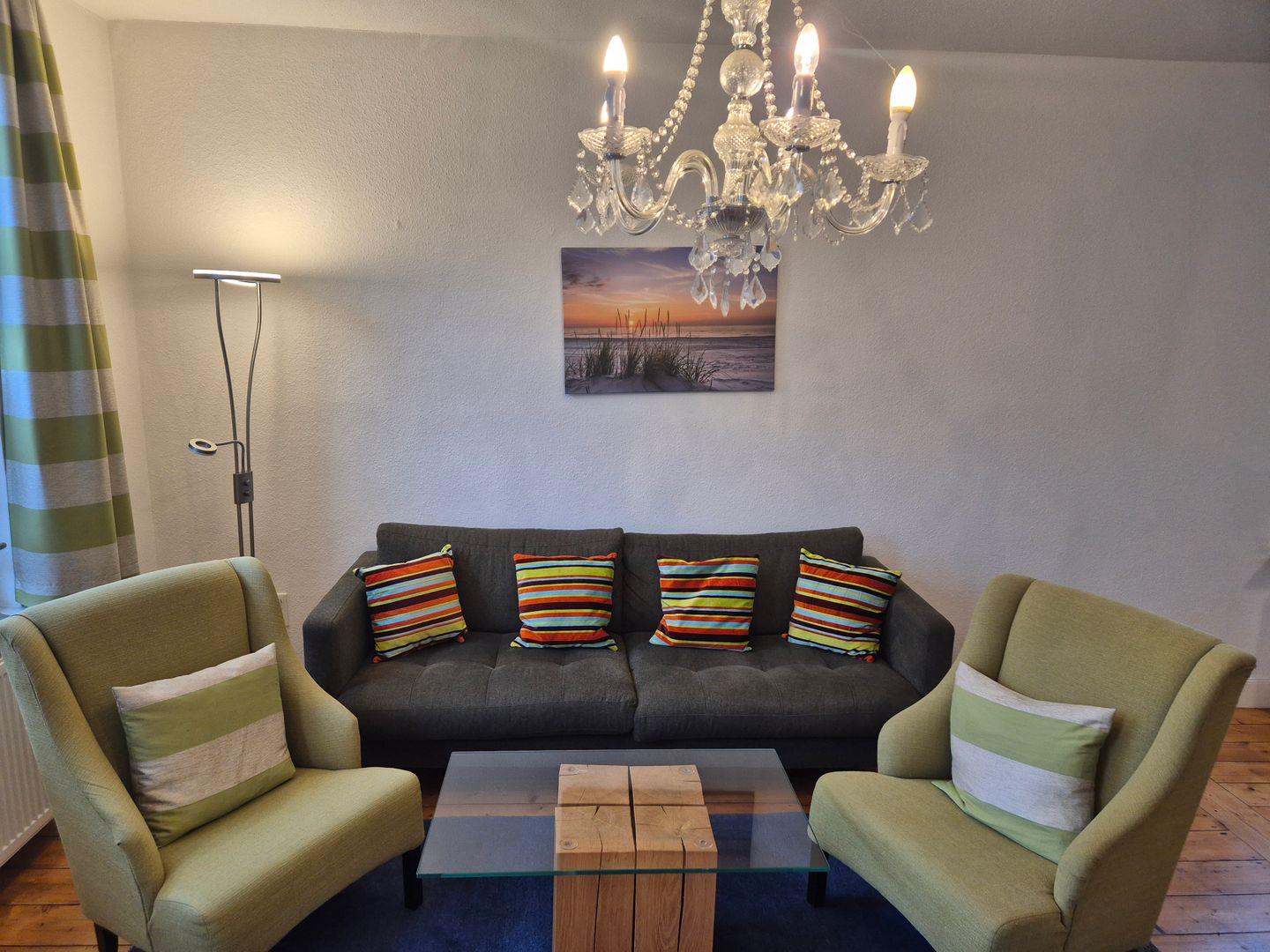Die Stadtvilla Norden bietet Ihnen eine hochwertige Unterkunft in zentraler Lage in Norden. Dieses Ferienhaus erstreckt sich über 100 m² Wohnfläche und ist auf drei Etagen unterteilt. Die Stadtvilla eignet sich ideal für bis zu vier Personen und Baby und stellt zwei separate Schlafzimmer sowie zwei moderne Badezimmer zur Verfügung. Im großzügigen Wohnbereich mit Dielenboden, gemütlicher Sofaecke und zusätzlichem Sessel finden Sie Raum zum Entspannen oder für gemeinsame Stunden mit Familie oder Freunden. Der daneben liegende Essbereich bietet ausreichend Platz für gemeinsame Mahlzeiten und tolle Spielabende.