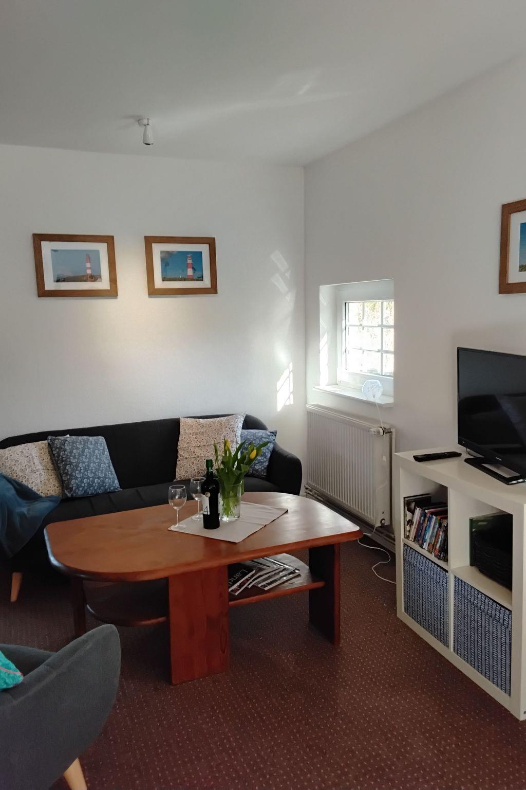 The 75m² house was extensively renovated in 2013. Two adults, two children and a dog can enjoy their holiday here from the very first moment. The two bedrooms are on the upper floor, each with a double bed, and a cot can be provided on request free of charge. The lower floor has a shower room and a big living room flooded with daylight, comprising a kitchen unit, a dining space and a sofa corner. The kitchen unit is equipped with a three-ring ceramic hob, a cooker hood, a convection oven and a dishwasher, and an adjacent standing fridge with a big freezer compartment. The lounge corner provides a two-seater and a three-seater sofa, satellite TV and a DVD player.