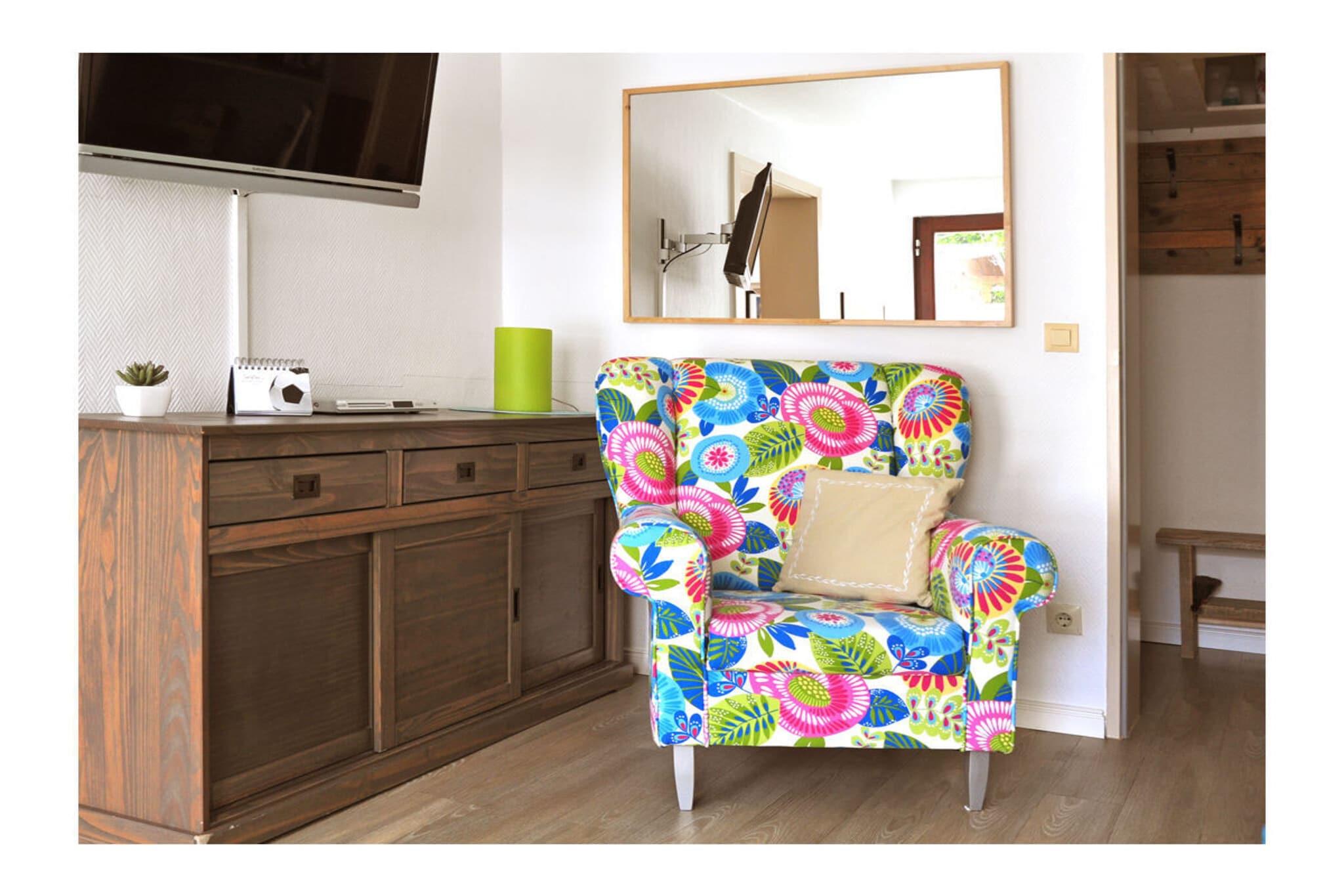 Lejligheden ligger i stueetagen og har en rummelig terrasse. Der kan du nyde din morgenmad i morgensolen. Lejligheden blev fuldstændig renoveret i 2010 og er løbende blevet opdateret og moderniseret siden da. Den har et moderne badeværelse. Slap af i en komfortabel boxmadras. I stuen giver en sovesofa af høj kvalitet med lamelbund to ekstra sovepladser i fuld størrelse. Møblerne består af basismaterialer af høj kvalitet med charmerende og individuelle detaljer. Lejligheden har et soveværelse, et fuldt udstyret køkken med spiseplads til fire personer og en stue med en sovesofa. Der er også tv og radio samt gratis Wi-Fi. En rejseseng og en højstol er tilgængelige til små børn efter anmodning. Den er egnet til to til fire personer.