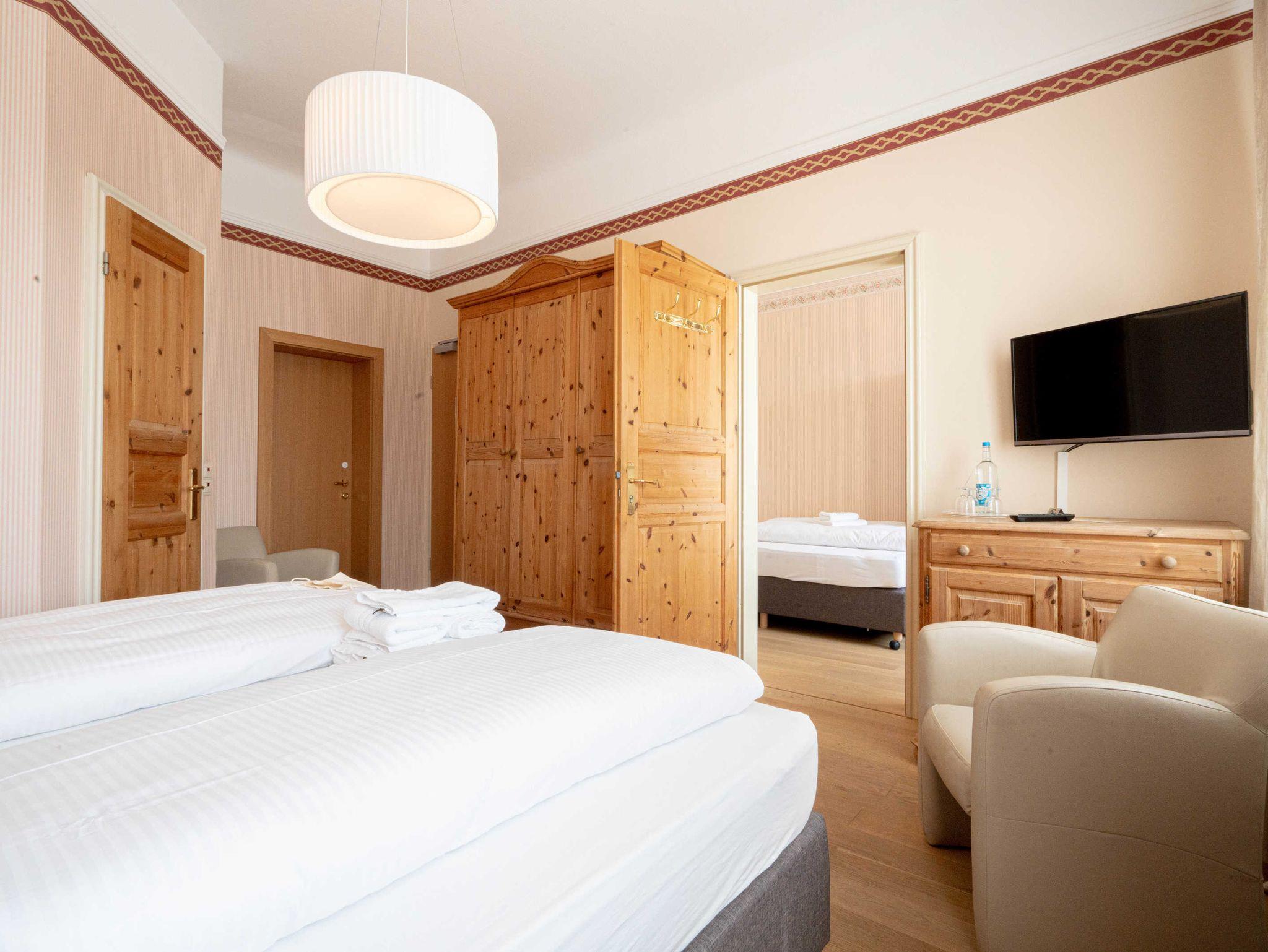 Unser Familienzimmer besteht aus einem Raum mit einem Doppelbett, einem weiteren Raum mit einem Einzelbett.