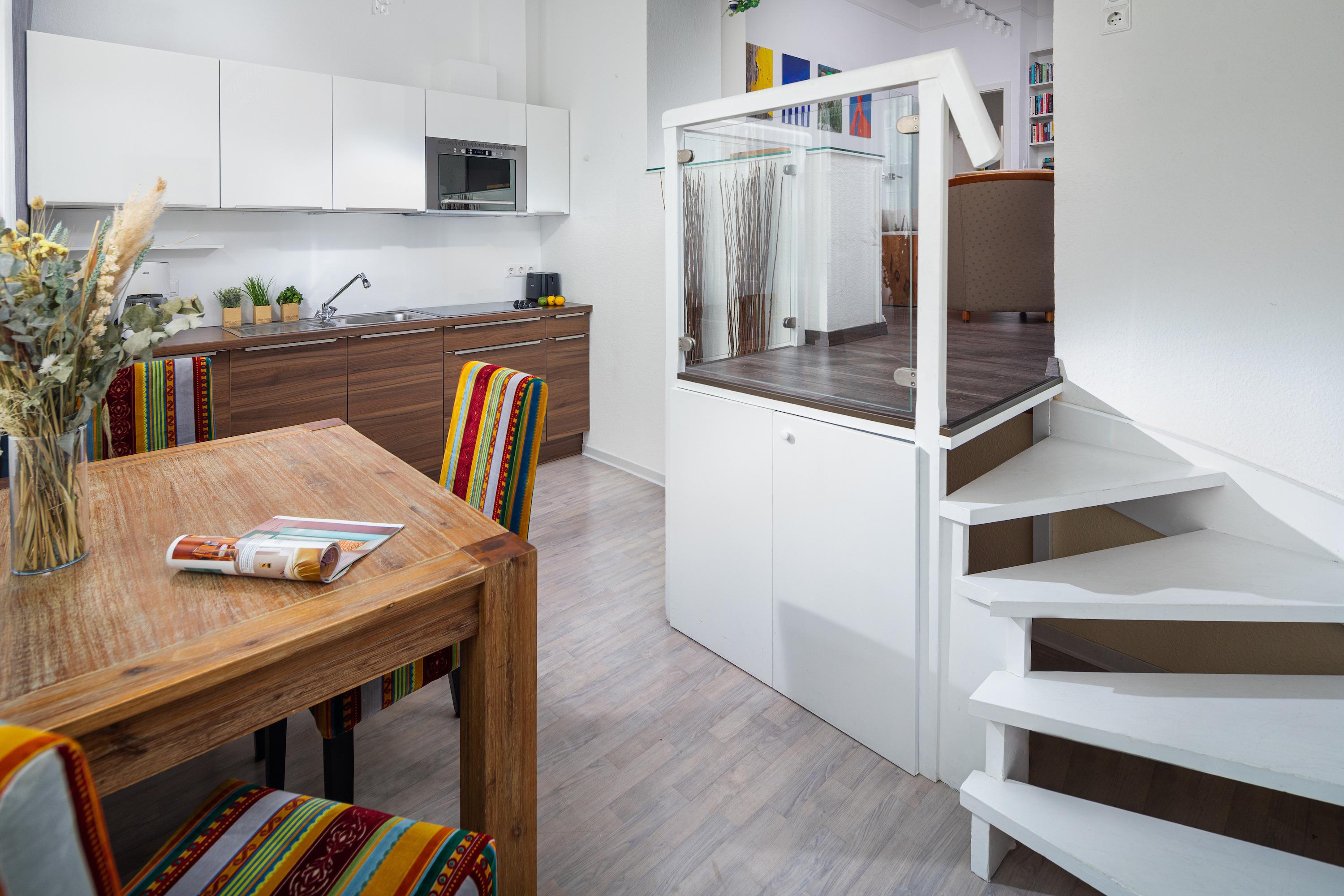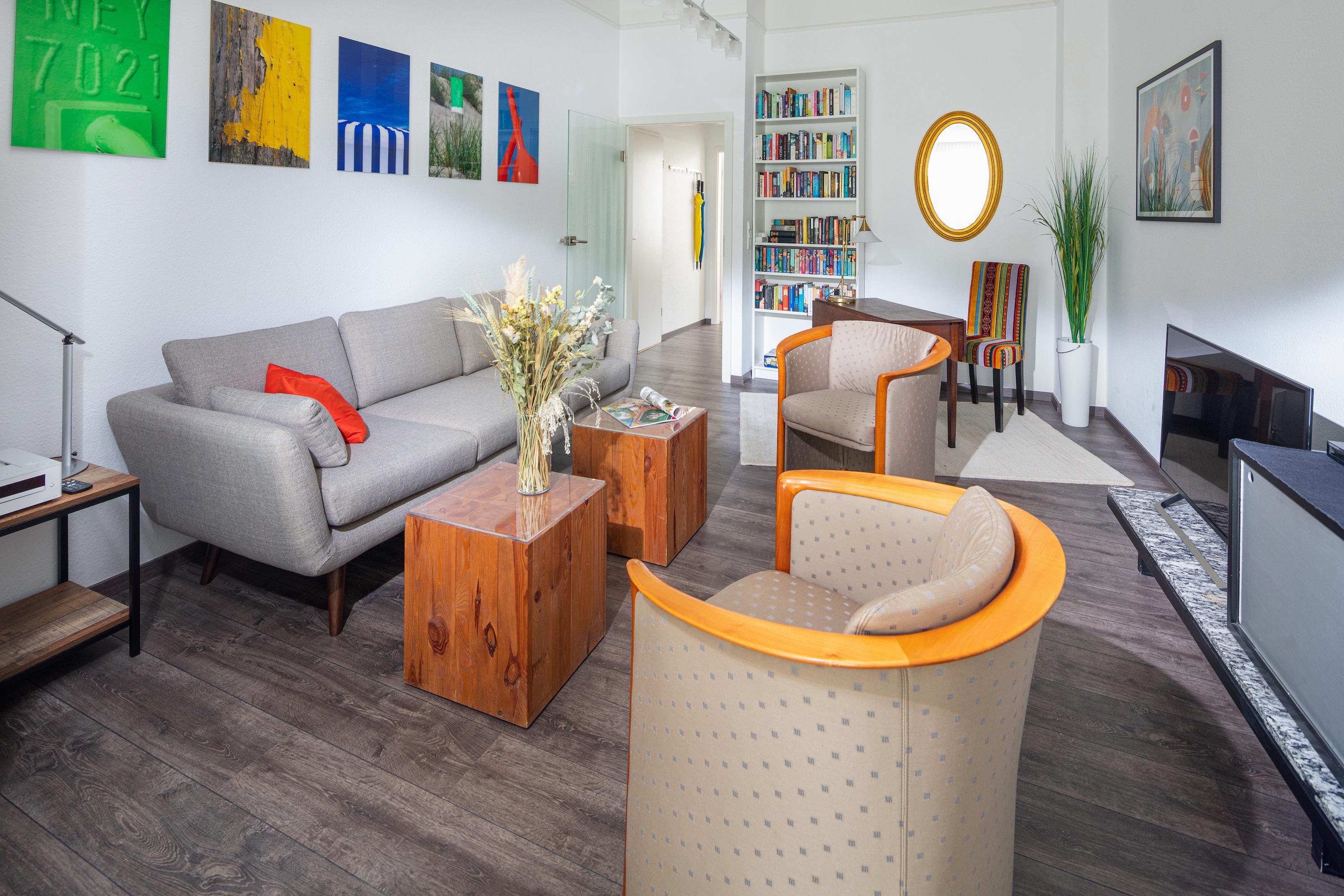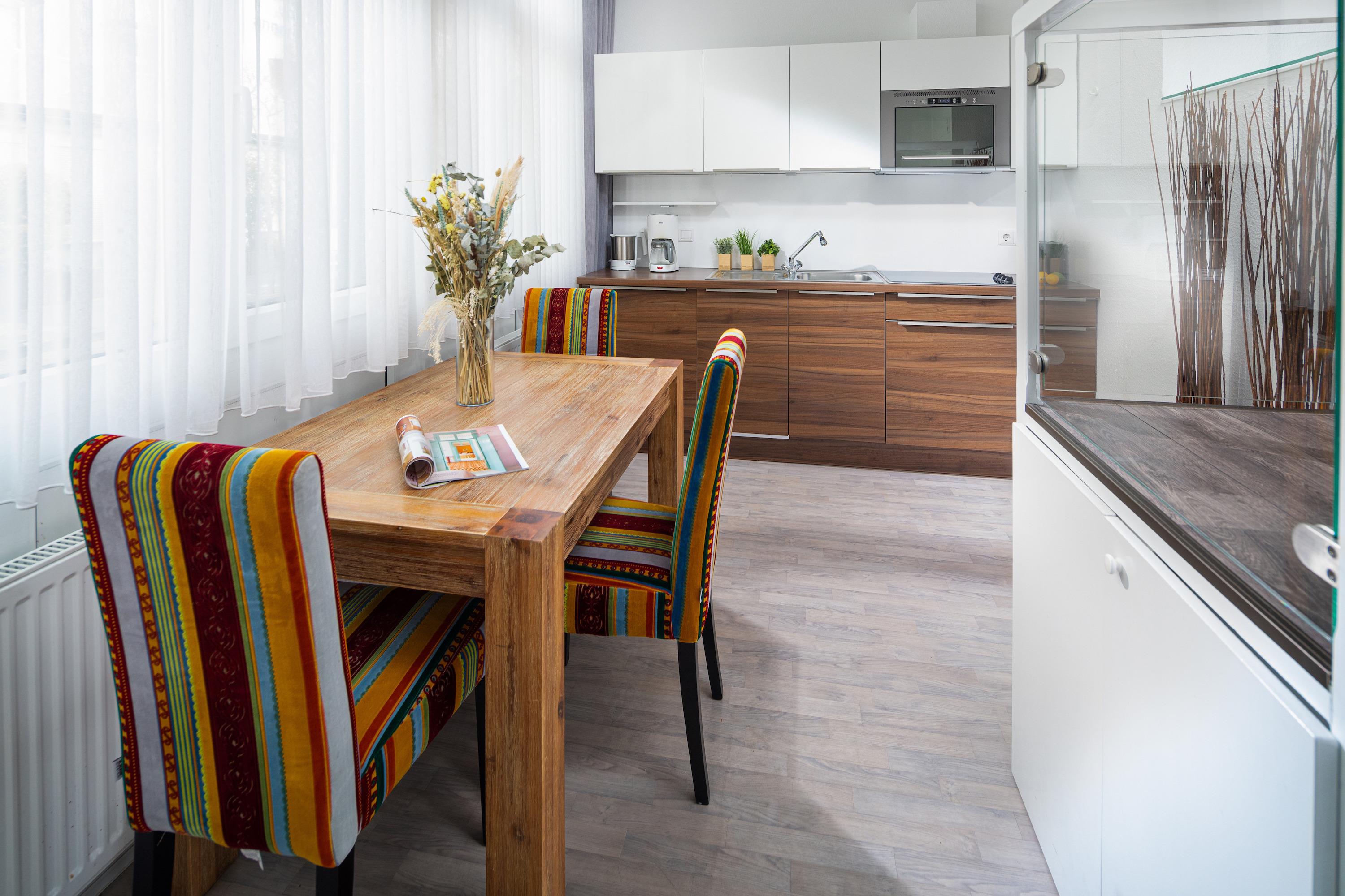 Im ruhigen, dem Weststrand zugewandten Teil der Friedrichstrasse von Norderney finden sich noch viele prachtvolle Häuser aus der Jahrhundertwende. Im Erdgeschoss und Hochparterre eines solchen Hauses liegt die Wohnung Friedrich II, ein 2-Zimmer-Apartmen mit einem ruhigen kleinen Schlafzimmer (Himmelbett 160 cm x 200 cm) und einem Wohnzimmer im Hochparterre sowie einem schönen Küchen-/Essbereich im Bereich der Veranda im Erdgeschoss. Das Haus verfügt über eine gemeinschaftlich nutzbare Waschmaschine und Wäschetrockner (Münzeinwurf).