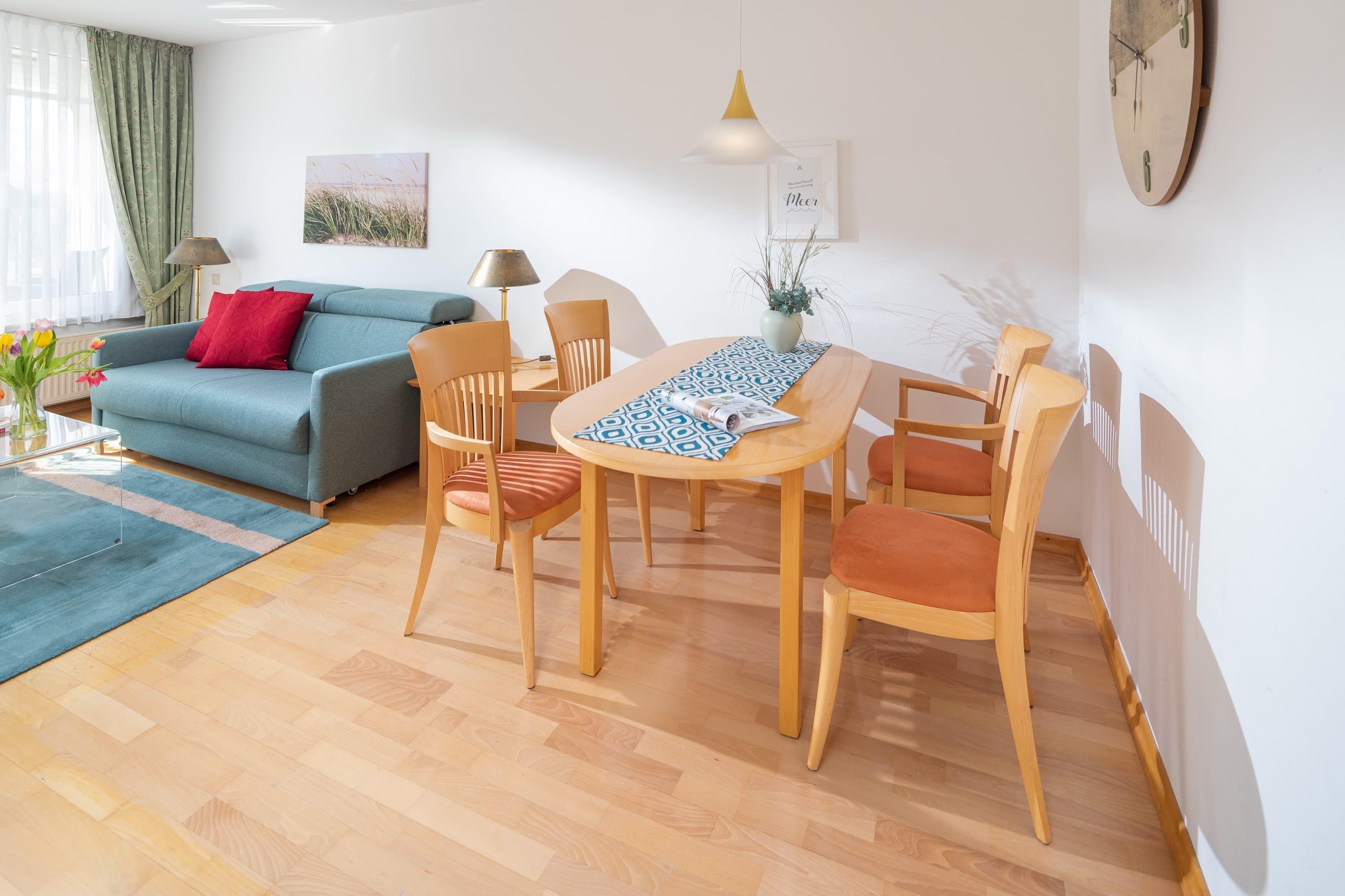In unmittelbarer Nähe zum Kurplatz, den Kureinrichtungen und dem Badehaus liegt das gepflegte Apartmenthaus „Kleine Möwe“. Die Wohnung 08 befindet sich im zweiten Stock (Aufzug).