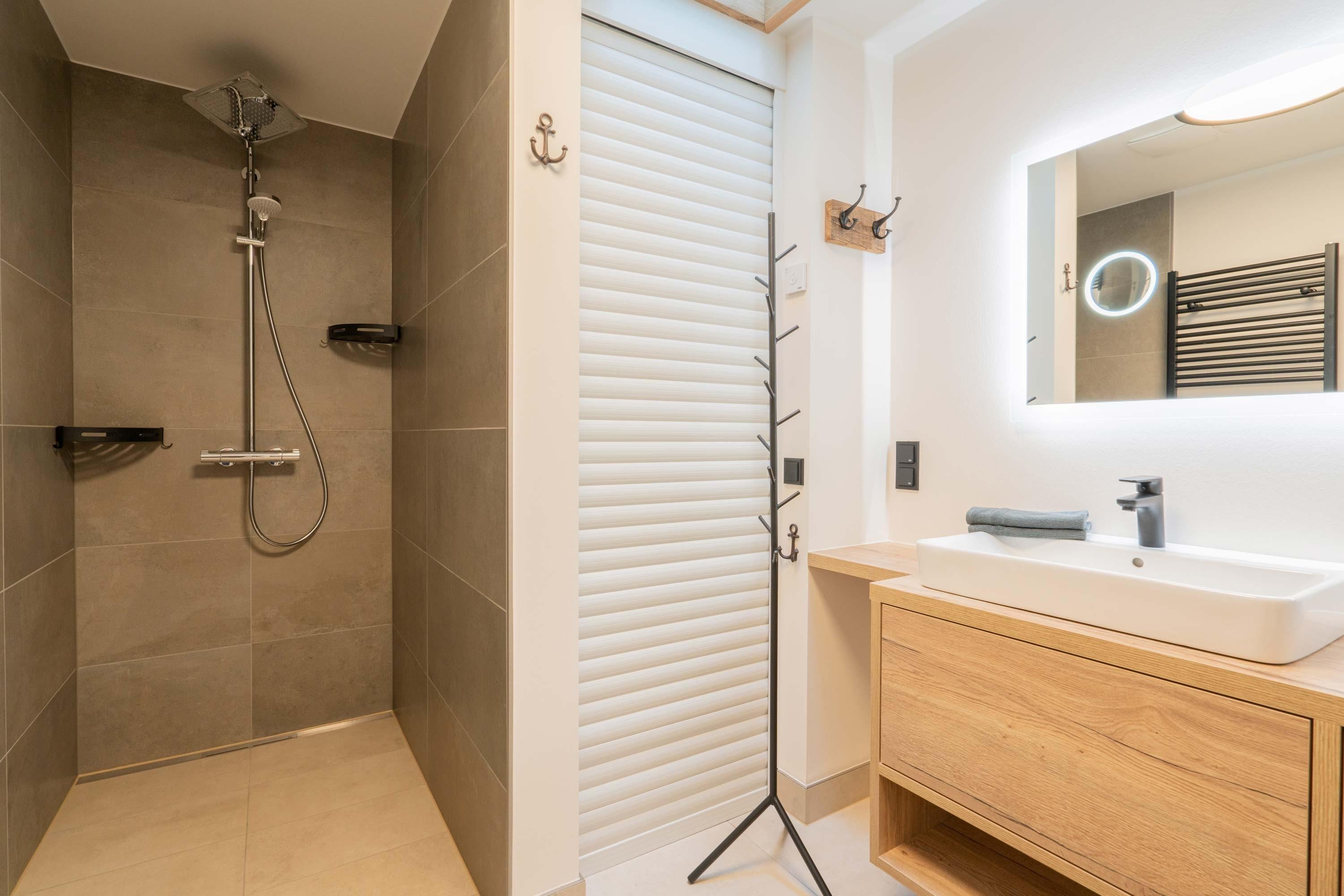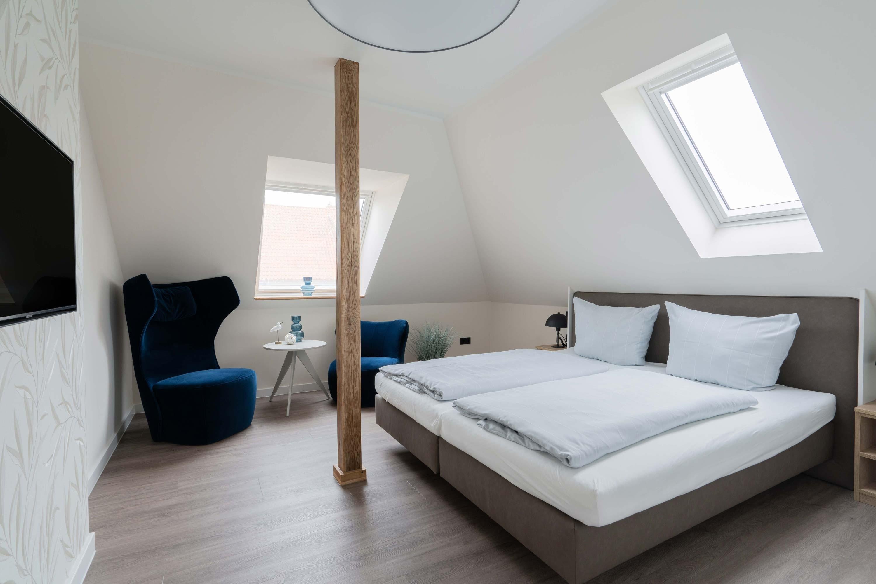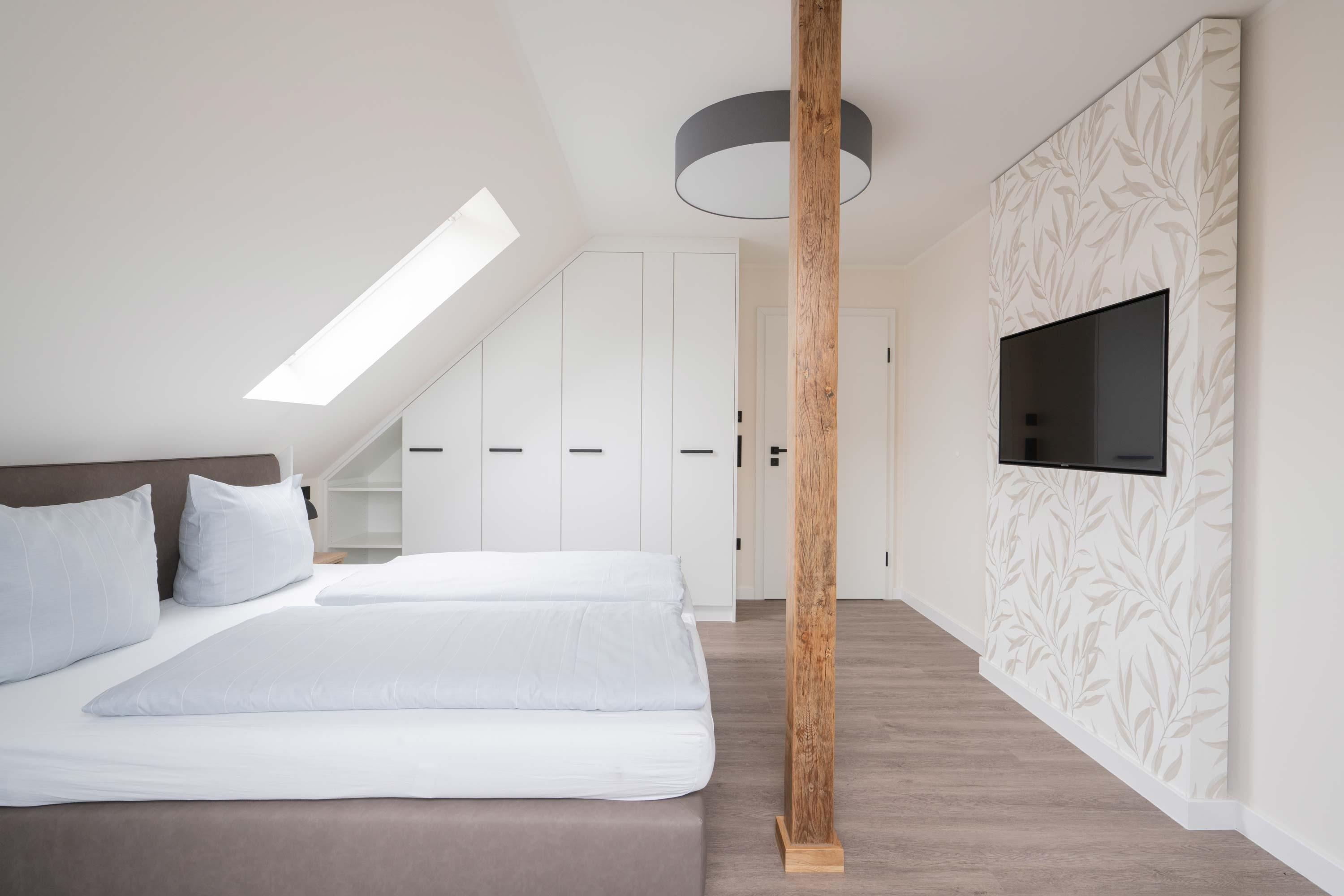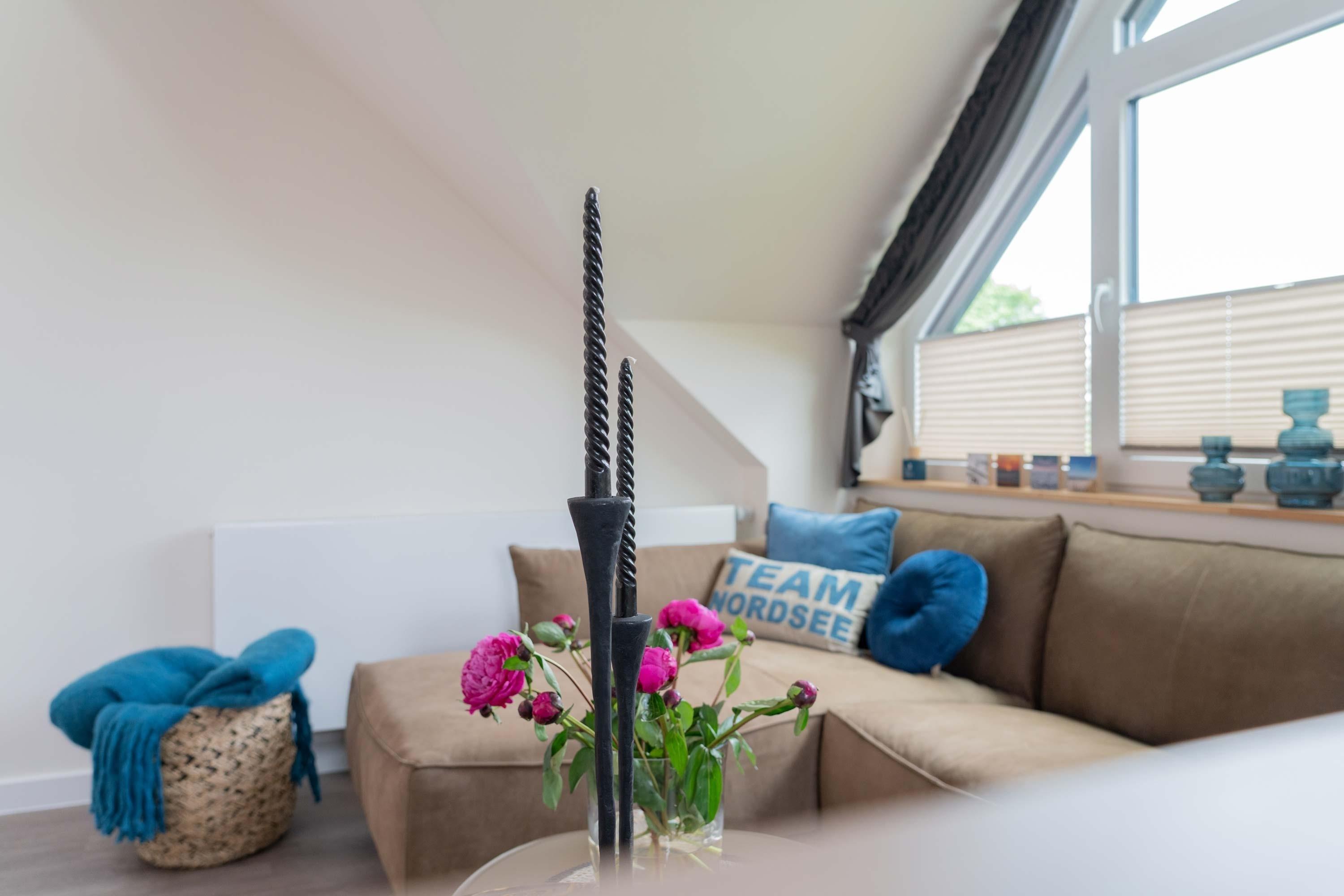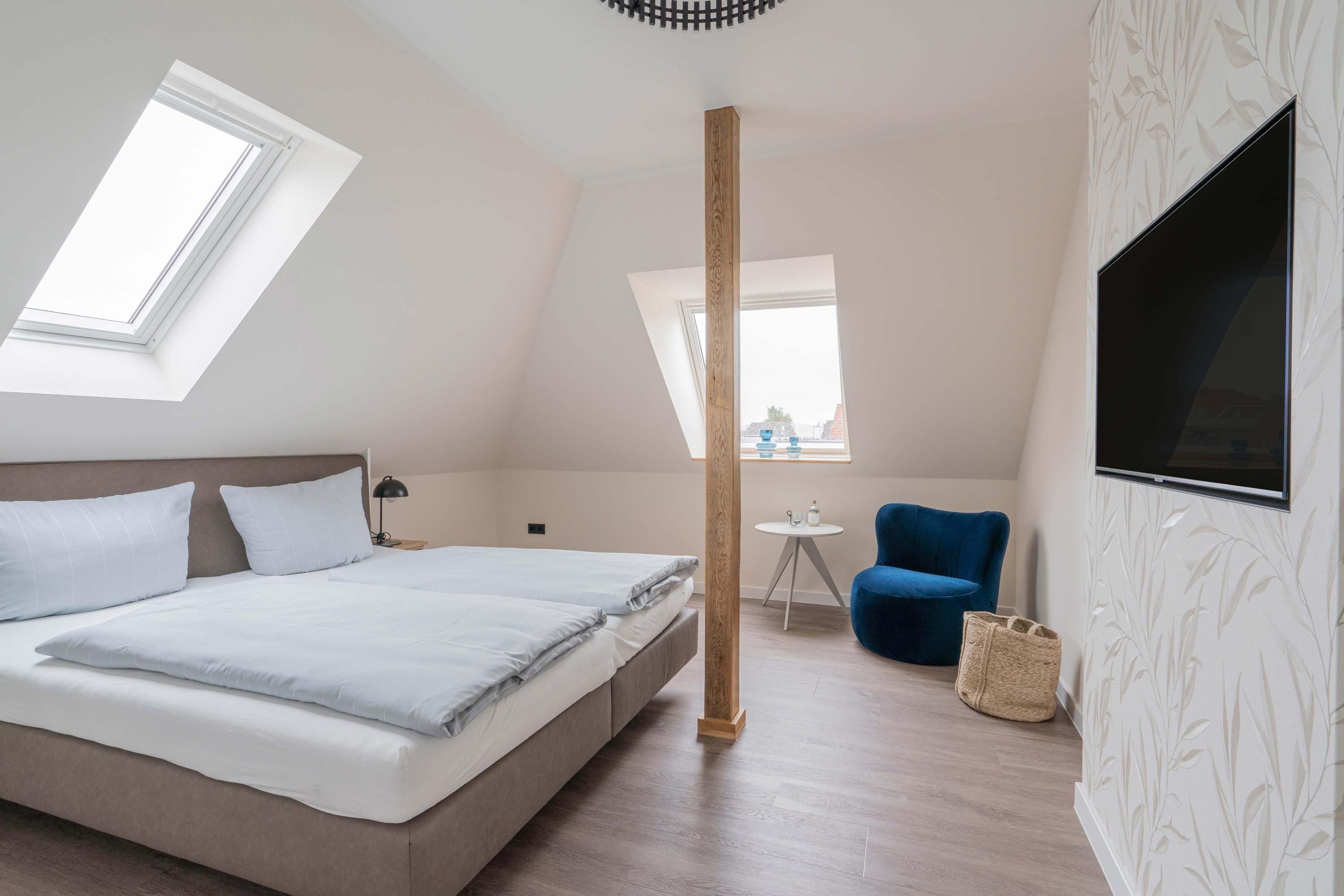 Die 70qm große Ferienwohnung "Neywatt 1“ wurde 2022 komplett neugestaltet. Sie liegt ruhig und grün im Fischerhafen, nahe der Surferbucht. Vom Balkon aus haben Sie einen schönen Blick ins Grüne und auf das Wattenmeer. Im Wohnbereich besticht die Wohnung mit ihrer Großzügigkeit und einer sehr geräumigen Wohnküche. An der gut ausgestatteten Kochinsel können köstliche Mahlzeiten zubereitet werden und dort direkt gemeinsam genossen werden. Entspannung danach bietet die liebevoll gestaltete, gemütliche Sofaecke. Die zwei großzügigen Schlafräume sind jeweils mit einem Doppelbett (180cm) und TV ausgestattet. Einen zusätzlichen Schlafplatz für eine weitere Person gibt es im Giebel des Wohnraums. Das Duschbad bietet neben der Regendusche eine eigene Waschmaschine (kostenpflichtig) und einen Trockner (kostenpflichtig). Vor dem Haus steht Ihnen ein PKW-Stellplatz zur Verfügung.