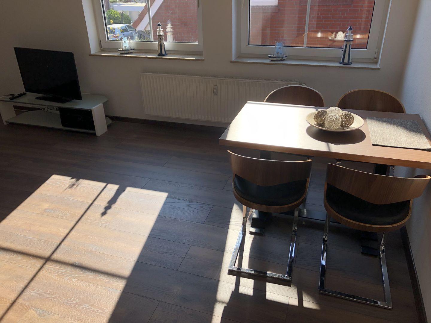 Die Wohnung wurde im Frühjahr 2019 komplett renoviert. Der Laminatboden in allen Räumen wurde neu verlegt, alle Wände haben einen neuen Anstrich bekommen. Jegliche Möbel sind neu oder neuwertig und wurden extra auf den Charme der Ferienwohnung abgestimmt. Ebenso das Badezimmer und die Küche wurden vollständig erneuert, mit neuen Sanitäranlagen und einer neuen Einbauküche.