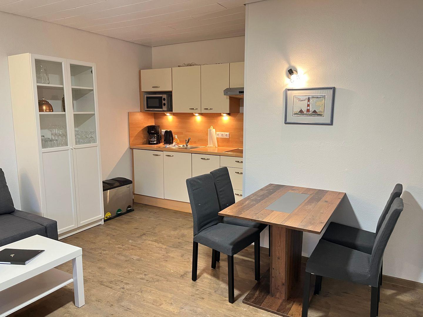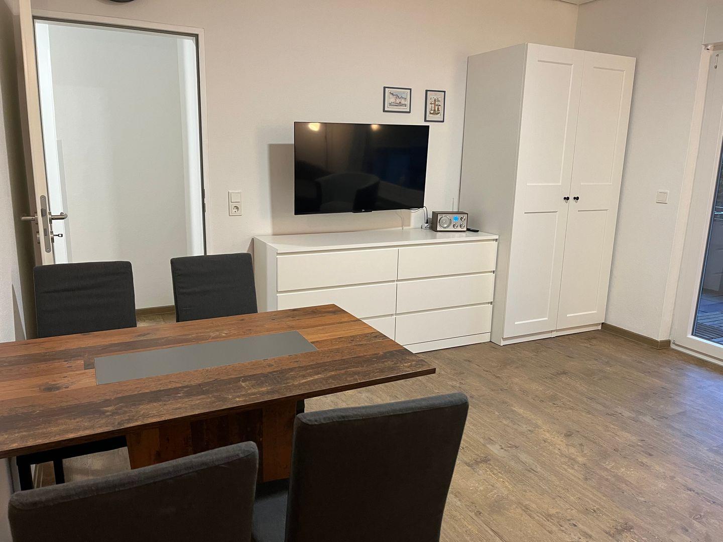 Die Wohnung verfügt über einen eigenen Eingang, wurde 2023 renoviert und neu eingerichtet. Im Wohn/Schlafraum steht Ihnen eine Küchenzeile mit allen erforderlichen Elektrogeräten, ein Esstisch für bis zu vier Personen sowie ein gemütliche Sofa zur Verfügung. Flachbildfernseher finden Sie im Wohn/Schlafraum und im Schlafzimmer, WLAN wird kostenlos bereitgestellt.