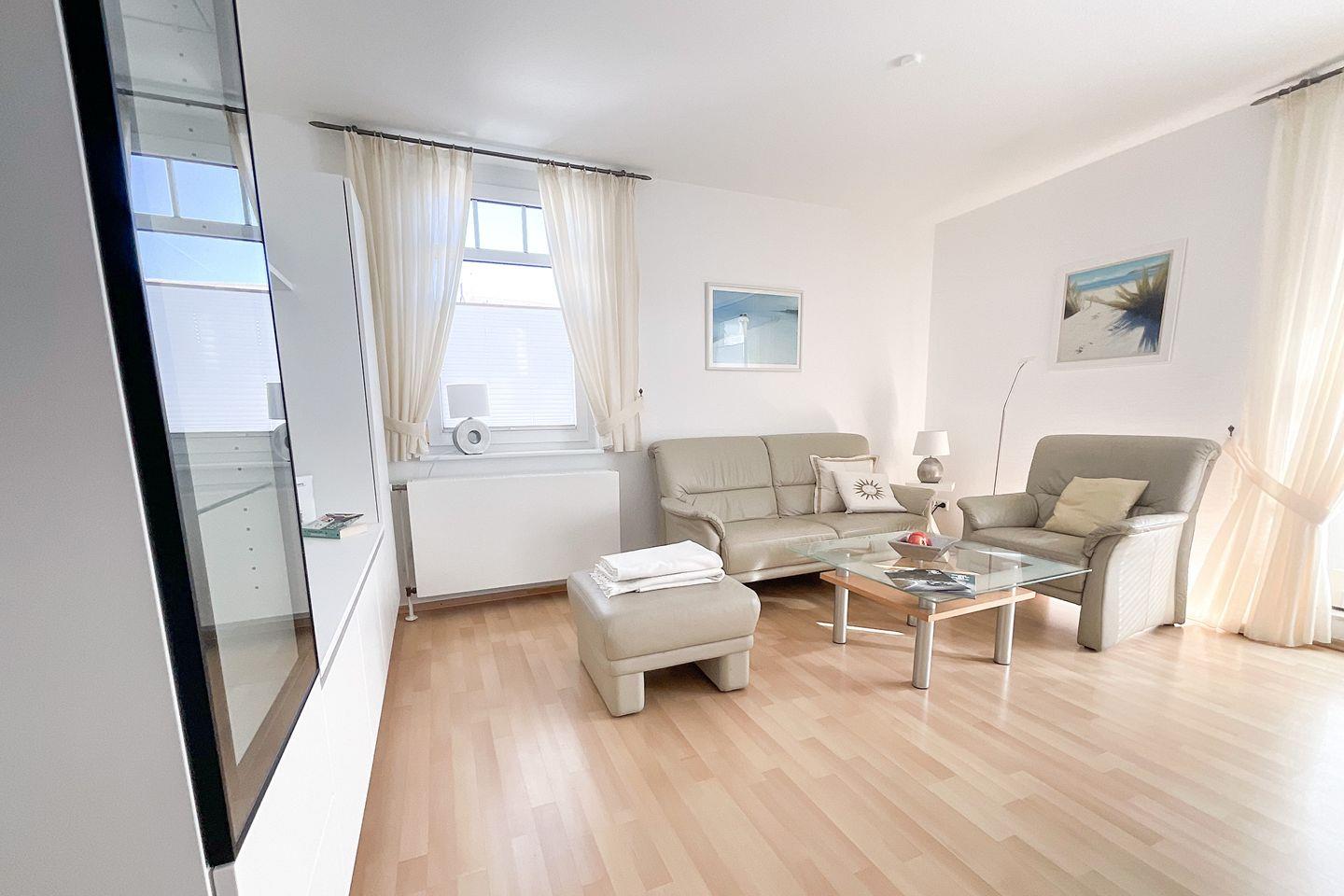 Die Wohnung 16 liegt im ersten Obergeschoss im rückwärtigen Teil des Hauses und ist nach Osten ausgerichtet. Sie ist hell eingerichtet und lichtdurchflutet. Das Schlafzimmer ist mit einem Doppelbett ausgestattet. Das Wohnzimmer verfügt über einen Koch- und Essbereich und einen neuen Smart-TV. Das Badezimmer ist modern gestaltet und verfügt über eine Dusche und ein WC mit Außenfenster. Ein besonderes Highlight der Wohnung "Windrose 16" ist der Balkon mit Balkonmöbeln. Fahrräder können im Ständer am Haus oder im Keller abgestellt werden. Waschmaschine und Wäschetrockner befinden sich im Haus und stehen (für die gemeinschaftliche Nutzung gegen Münzeinwurf) zur Verfügung, was besonders für längere Aufenthalte von Vorteil ist. Haustiere (Hunde) sind in dieser Ferienwohnung nicht erlaubt.