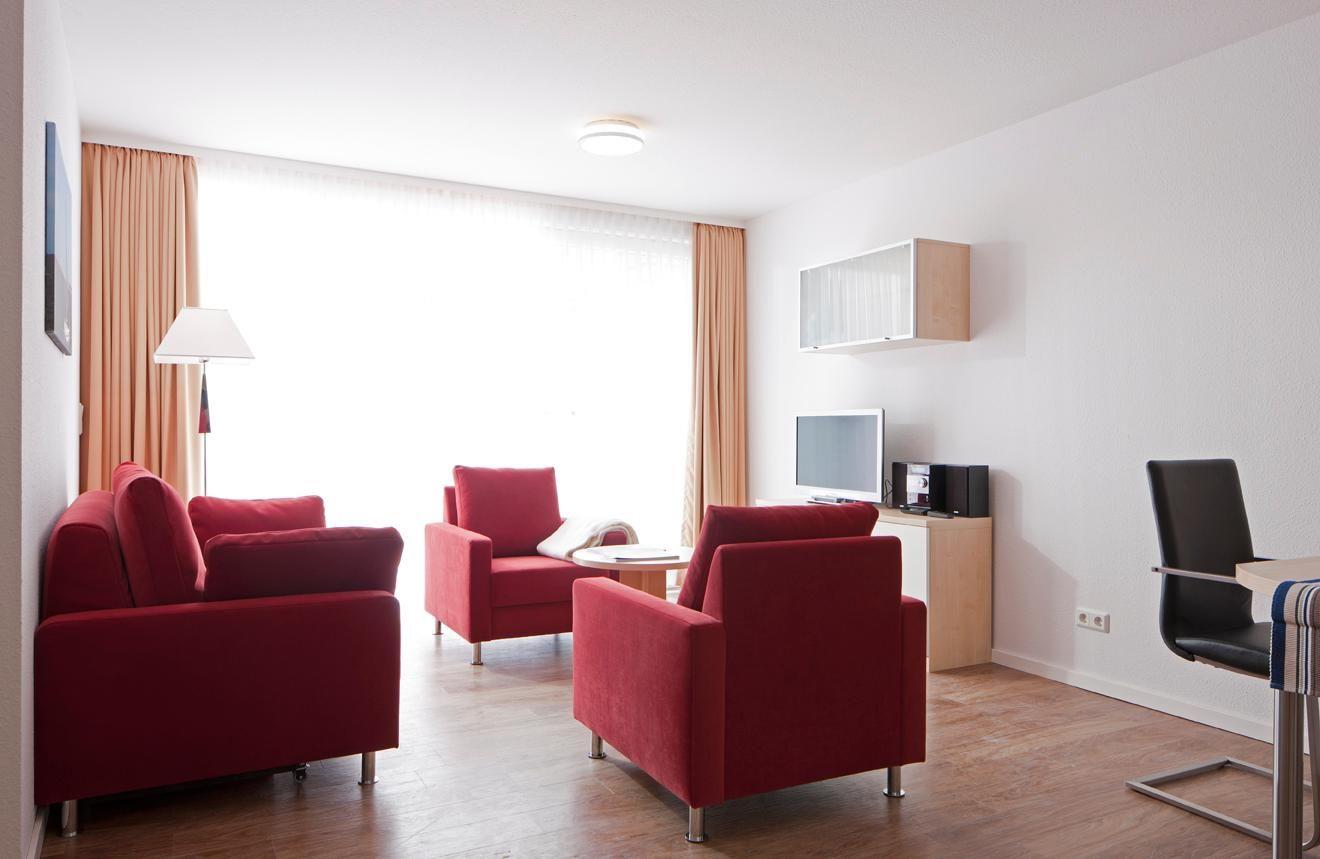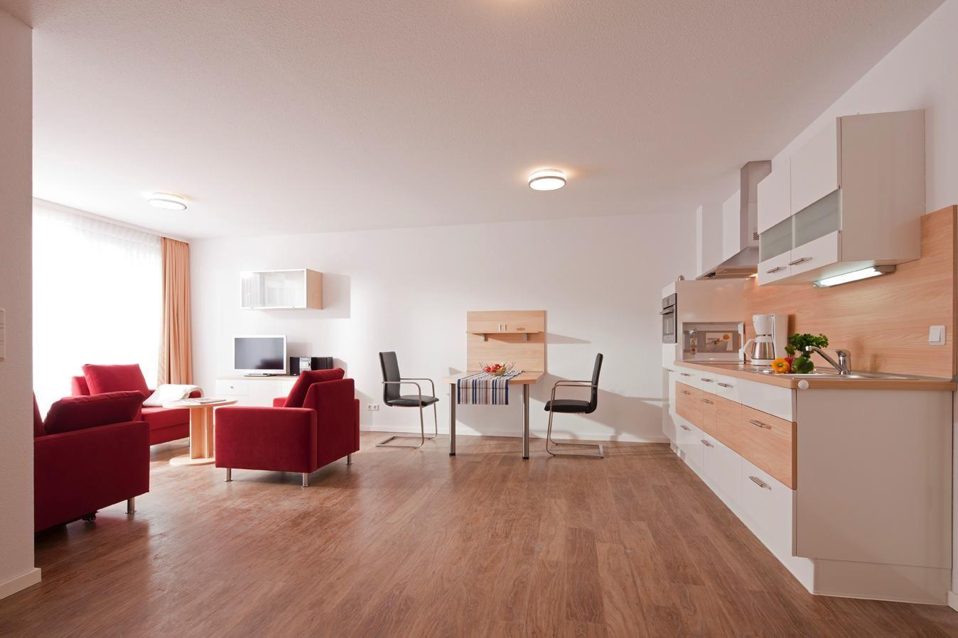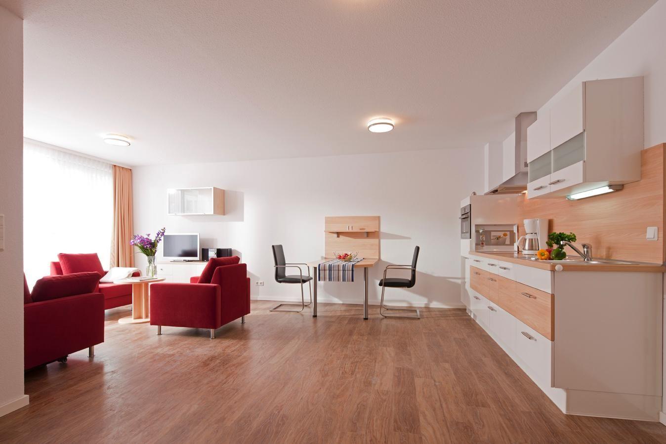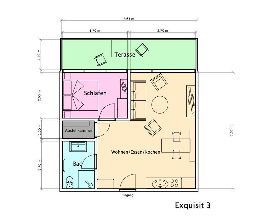 Die Wohnung "Exquisit 3" ist modern eingerichtet und bietet Platz für bis zu 2 Personen. Das Wohnzimmer ist offen gestaltet mit einer integrierten, voll ausgestatteten Küchenzeile. Das Schlafzimmer verfügt über ein Doppelbett. Das Badezimmer wurde mit Dusche, Handtuchtrockner und einer Fußbodenheizung ausgestattet.