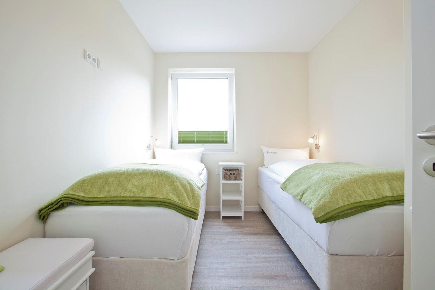 Die Wohnung wurde modern eingerichtet. Insgesamt stehen 2 Schlafzimmer, eines mit einem Doppelbett und eines mit zwei Einzelbetten ausgestattet, zur Verfügung. Das Badezimmer verfügt über eine Dusche. Der Wohnbereich wurde mit einer voll ausgestatteten Küchenzeile sowie einem Essbereich eingerichtet. Vom Wohnbereich kann die eigene Terrasse betreten werden.