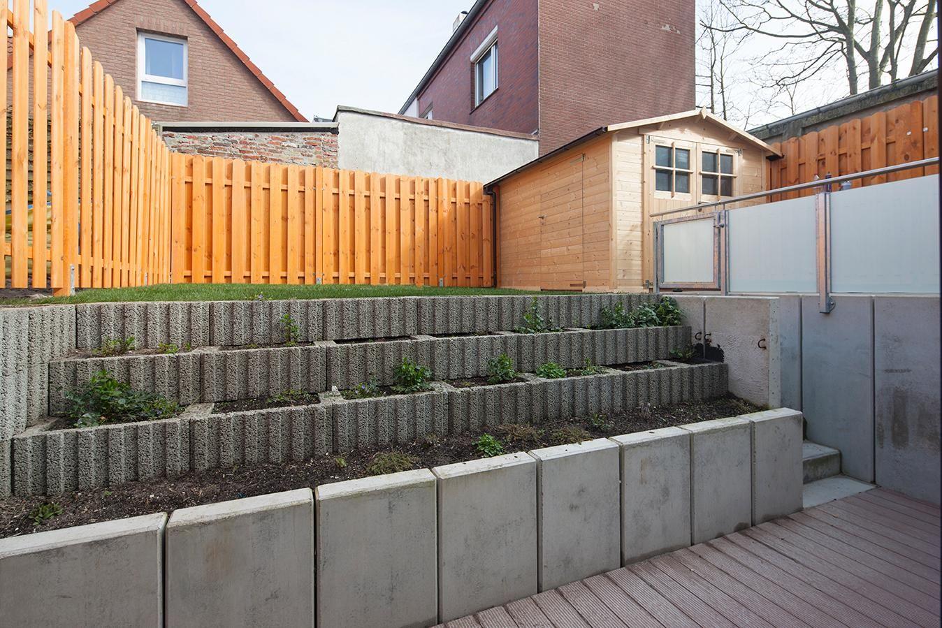 Zur straßenabgewandten Seite hin liegt eine Terrasse mit kleinem begrünten Hof. Hier darf auch der vierbeinige Freund mitkommen, denn die Ferienwohnung heißt auch Hunde herzlich willkommen. Erlaubt ist maximal 1 Hund (Höhe maximal kniehoch). Die Hundewiese befindet sich in der Nähe des Fährhafens (kein Leinenzwang).