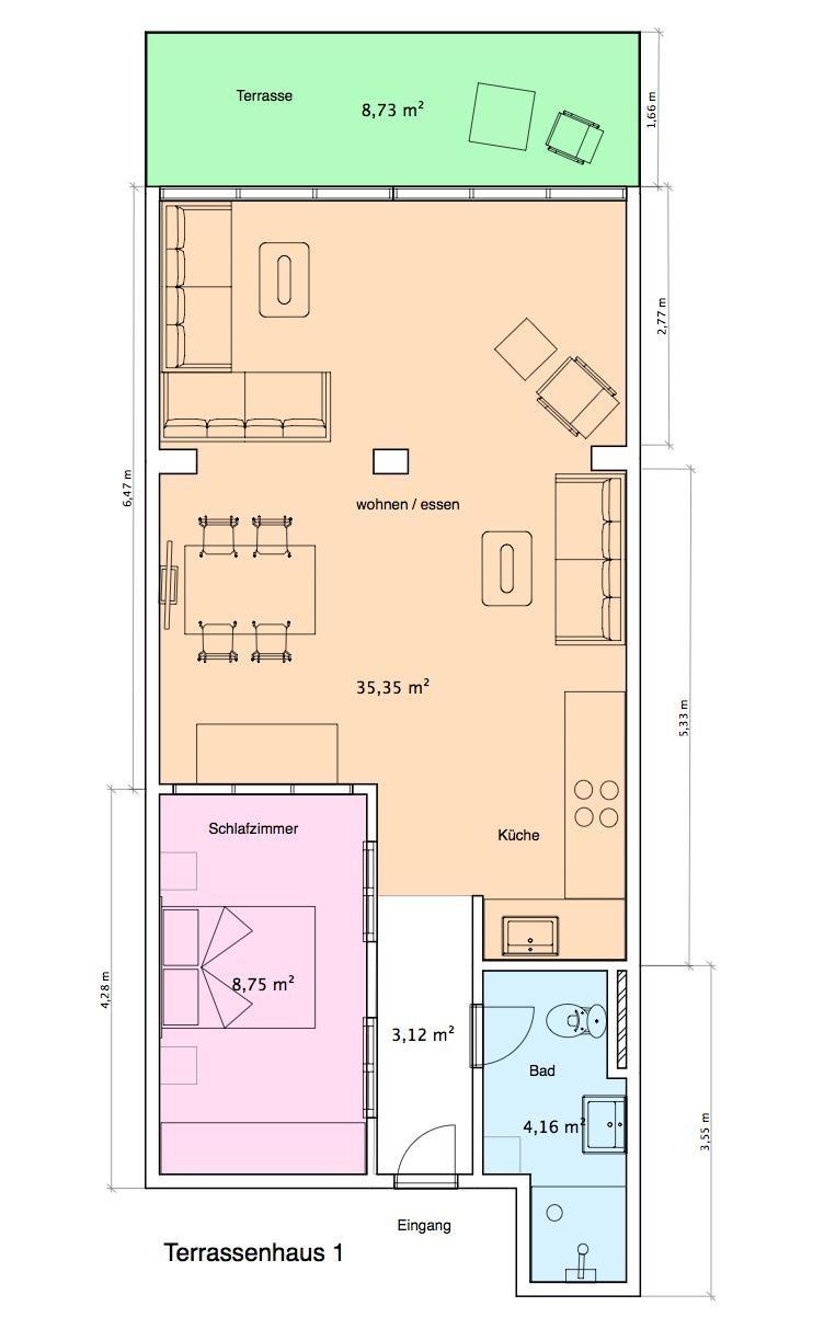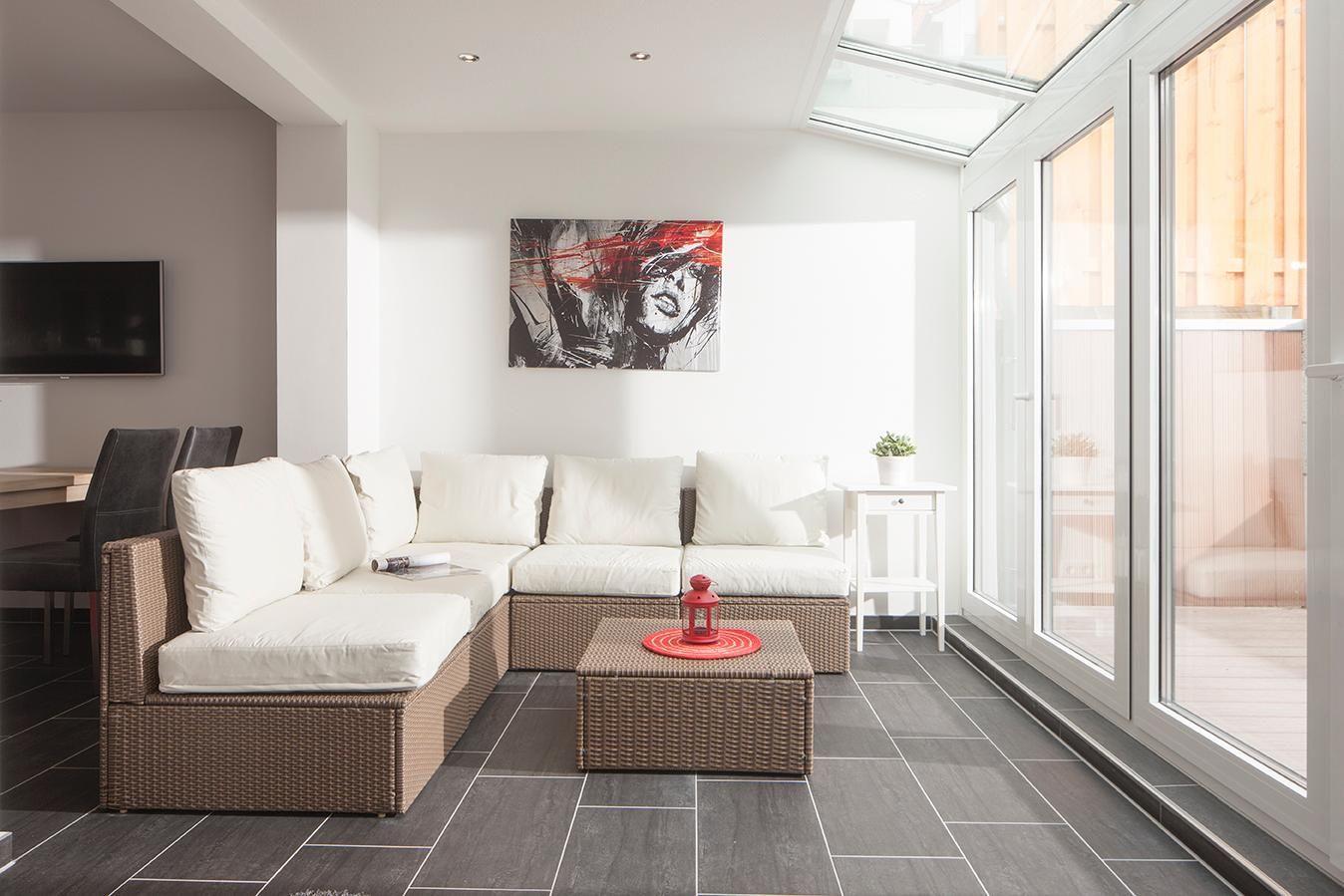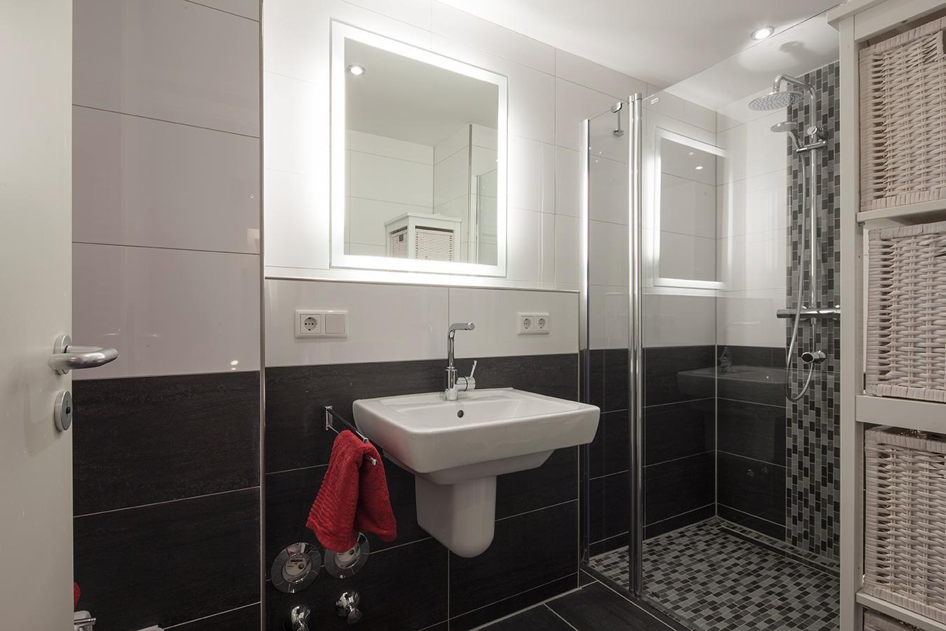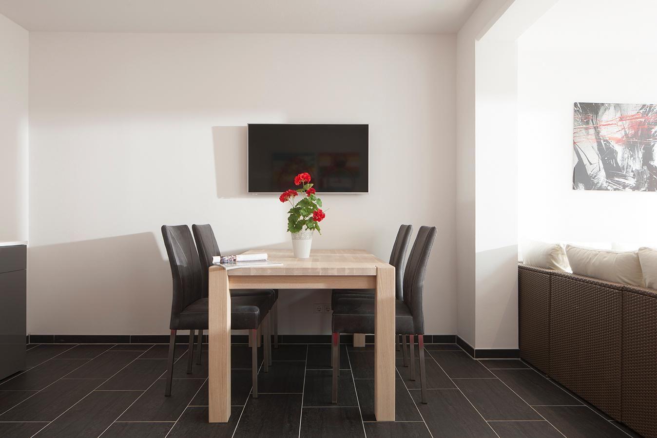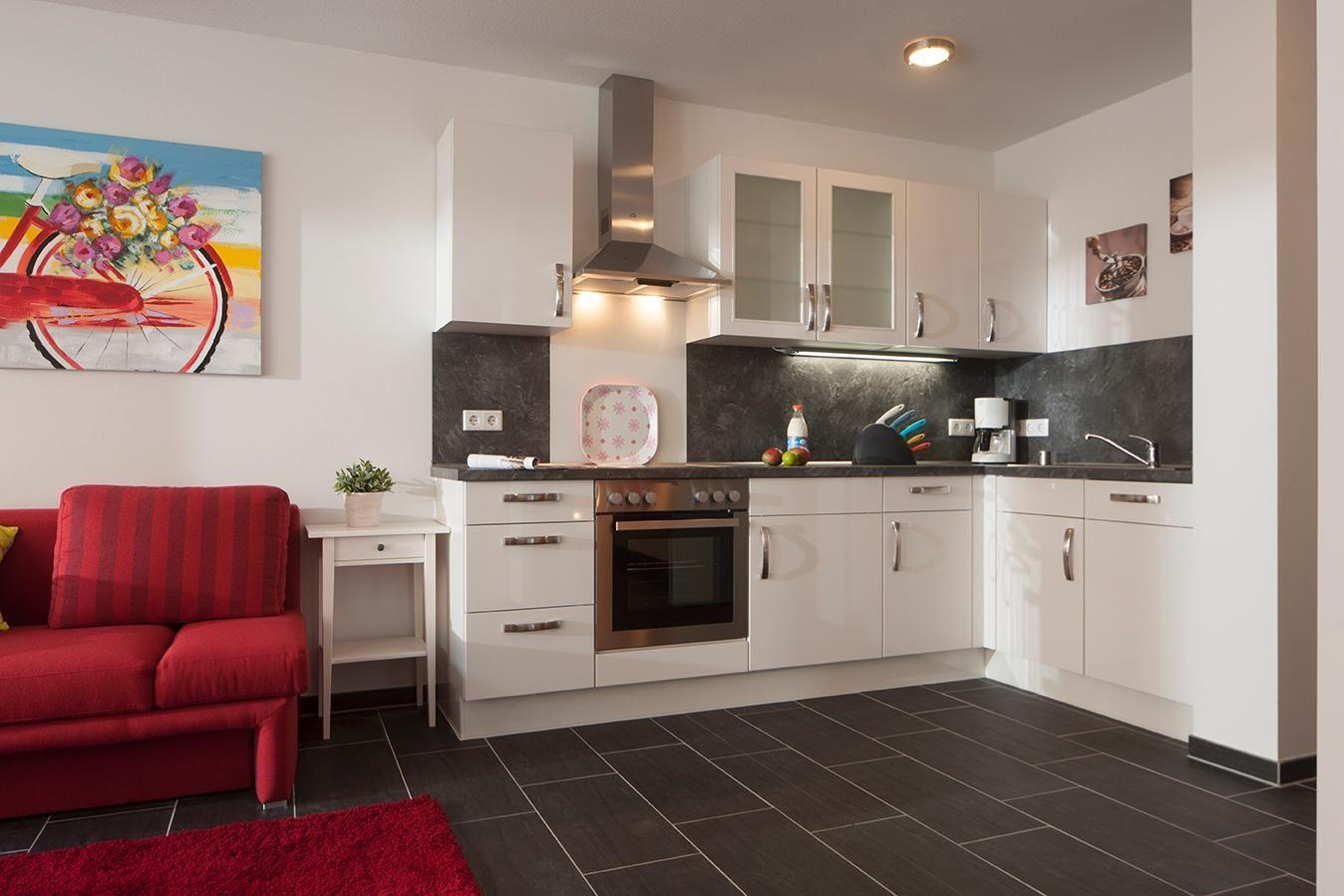 Die Wohnung verfügt über einen Wohn-Küchenbereich inklusive Sofaecke und Essbereich. Zudem verfügt dieser über bodentiefe Fenster. Das separate Schlafzimmer ist mit einem Doppelbett eingerichtet. Das Badezimmer verfügt über eine ebenerdige Dusche.