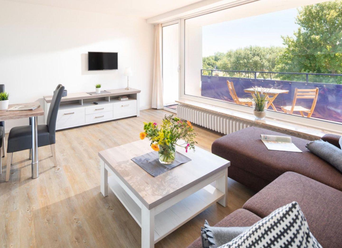 Die Ferienwohnung "Weitsicht" befindet sich im zweiten Stock des Hauses und liegt in der Marienstraße. Die Marienstraße liegt direkt am Kurpark. Die Wohnung bietet, wie der Name schon sagt, einen Blick auf den Schwanenteich und die umliegenden Parkanlagen. Auf ca. 43 Quadratmetern bietet die Wohnung Platz für bis zu zwei Personen.