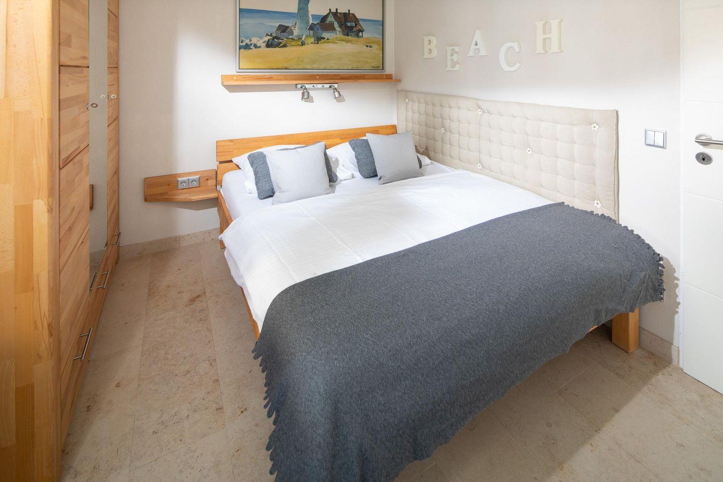Die Ferienwohnung "Ney Eye" im Apartmenthaus "Alte Teestube" auf Norderney bietet eine Kombination aus zentraler Lage und direktem Zugang zum Meer. Die Wohnung befindet sich im ersten Obergeschoss, zur ruhigeren Landseite hin. Die Wohnung besteht aus einem Schlafzimmer mit einem Doppelbett und einem abgetrennten Bereich inklusive Schlafsofa. Das Bad ist mit einem Naturstein-Duschbad ausgestattet.