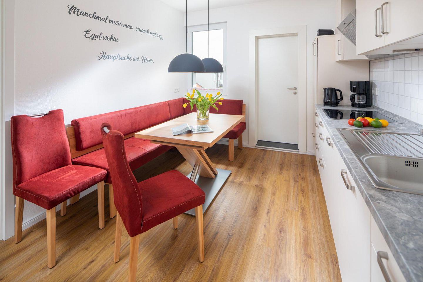 "Herrliche 86 qm auf 2 Ebenen. Zu fünft macht hier Urlaub Spaß - jeder hat sein bequemes Bett und man trifft sich zum Kochen, Essen und Zusammensein im gemütlichen Küchen- und Wohnbereich"
