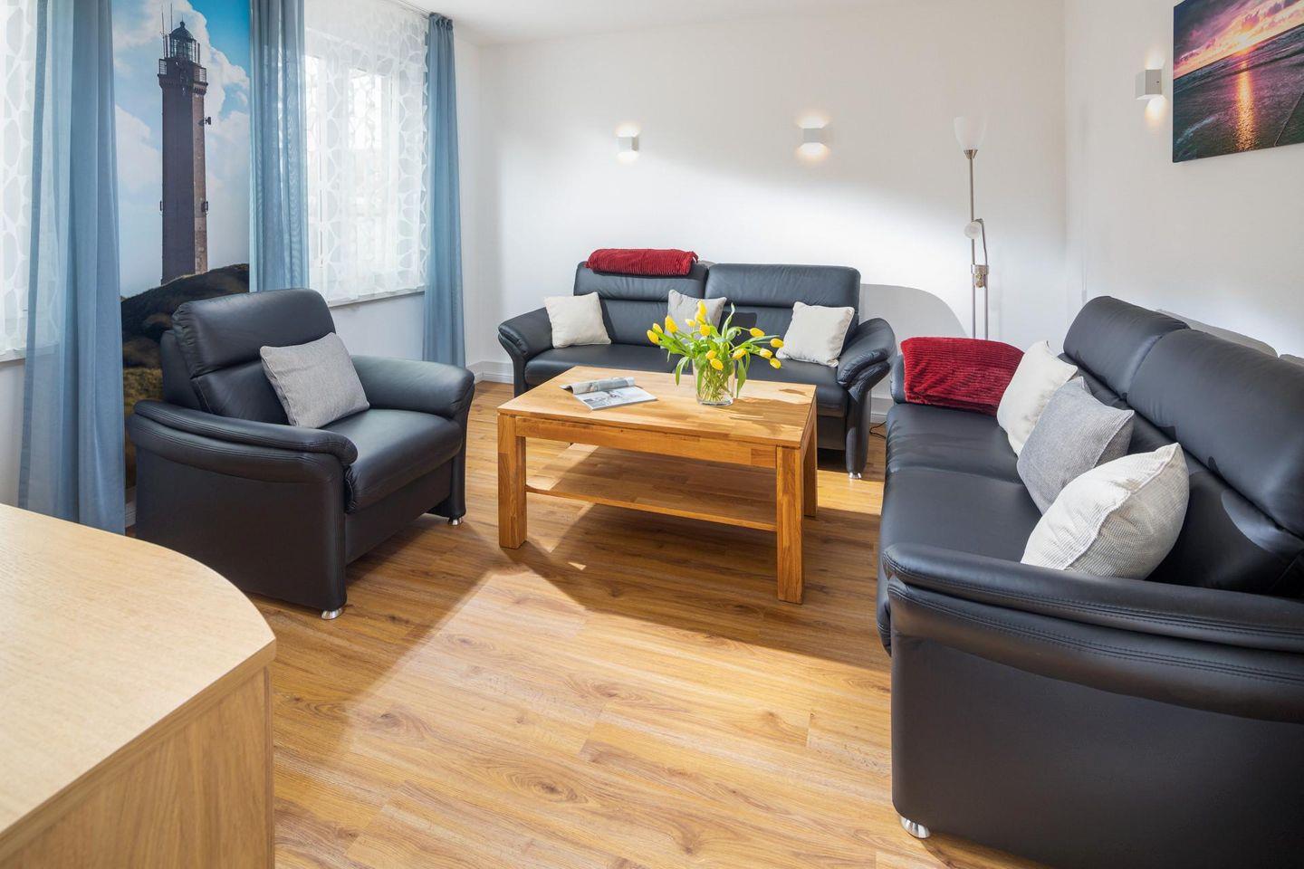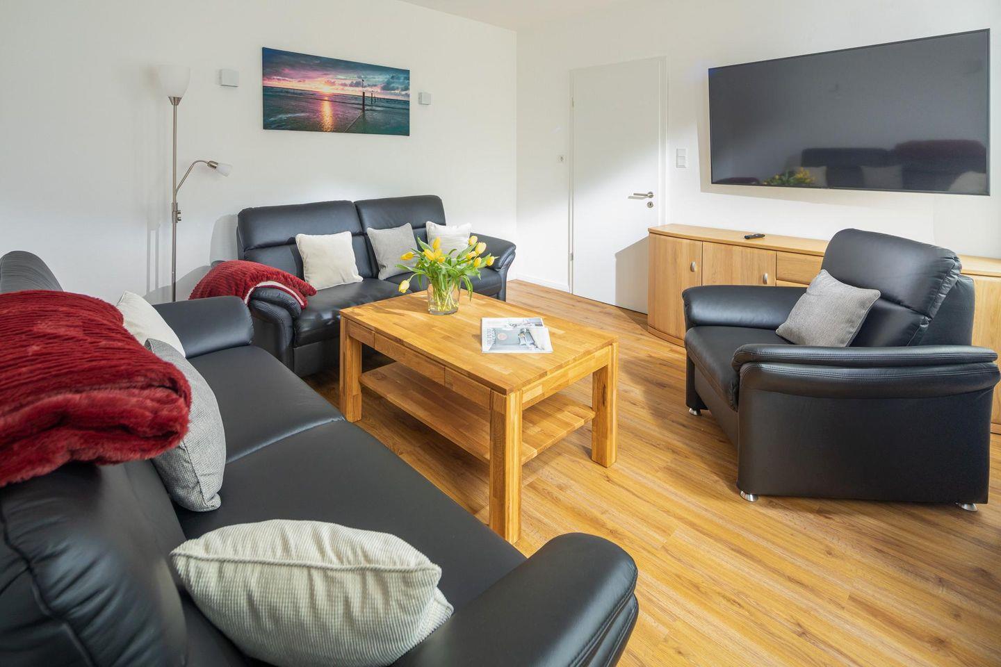 Neben den Schlafzimmern gibt es ein geräumiges Wohnzimmer. Die separate Küche verfügt über einen Essbereich. Ein Badezimmer mit Dusche und WC steht zur Verfügung, ebenso wie eine separate Gäste-Toilette. Die Terrasse der Wohnung liegt nach Osten. Im Haus gibt es die Möglichkeit, eine Waschmaschine und einen Wäschetrockner zu nutzen. Diese stehen den Gästen gegen eine Gebühr zur Verfügung, was besonders für längere Aufenthalte praktisch sein kann. Zusätzlich zum Wäscheservice bietet das Haus auch die Option, Fahrräder auszuleihen. Der Fahrradverleih bei "Molly" steht dafür zur Verfügung. Hunde sind in dieser Ferienwohnung nicht erlaubt.