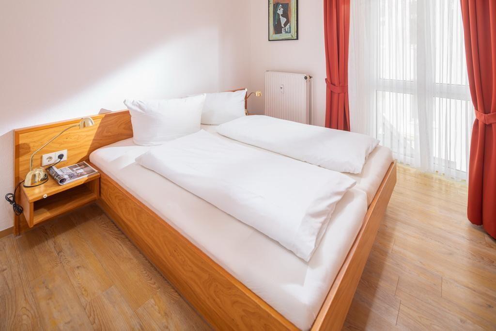Die Wohnung verfügt über ein Schlafzimmer mit Doppelbett (2 Matratzen je 0,80m x 2,00m) und im Wohnzimmer lässt sich das Sofa bei Bedarf in eine Liegefläche von 1,80m x 2,00m verwandeln. Das Bad mit Dusche, WC und Handwaschbecken wurde erst 2020 komplett erneuert. Im Keller des Hauses befinden sich eine Waschmaschine und ein Wäschetrockner, die gegen Münzeinwurf nutzbar sind. Hier können auch die Fahrräder sicher abgestellt werden. Hier darf auch der vierbeinige Freund mitkommen, denn die Ferienwohnung heißt auch Hunde herzlich willkommen. Erlaubt ist maximal 1 Hund (Höhe maximal kniehoch). Die Hundewiese befindet sich in der Nähe des Fährhafens (kein Leinenzwang).