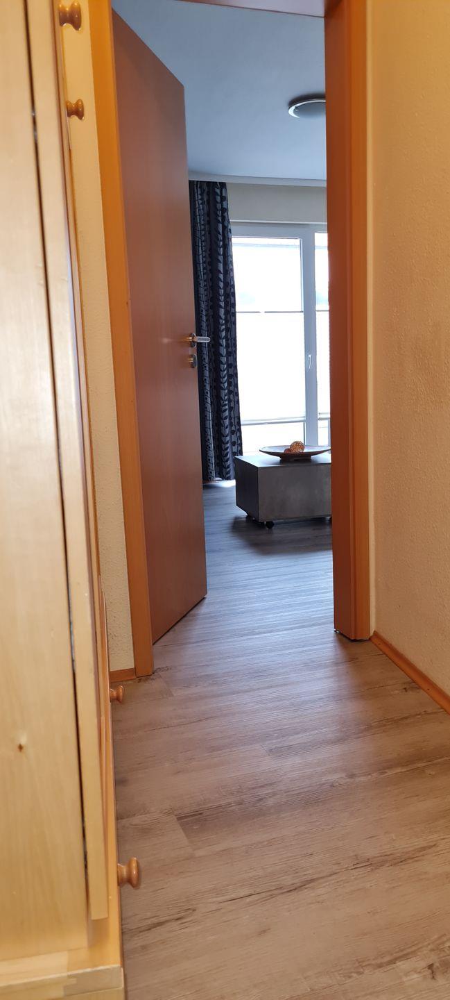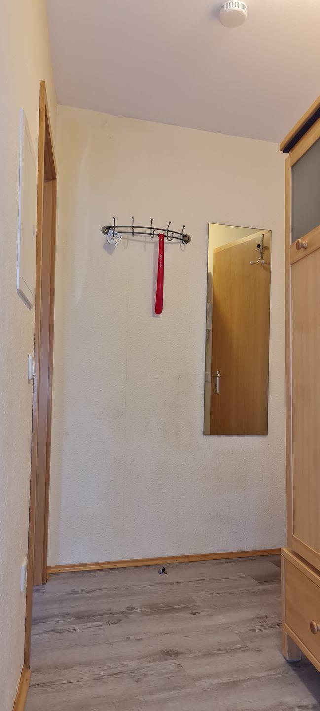 Das 1-Raum-Appartement im 1. Obergeschoss (steile Treppe) verfügt über einen Wohn/Schlafraum mit neuer Schlafcouch (140 x 200 cm, TV), Kochzeile, separates Badezimmer mit Dusche/WC. Vom Wohn-/Schlafraum haben Sie Zugang zum großzügigen Westbalkon. NICHTRAUCHERWOHNUNG! Keine Katzen erlaubt.