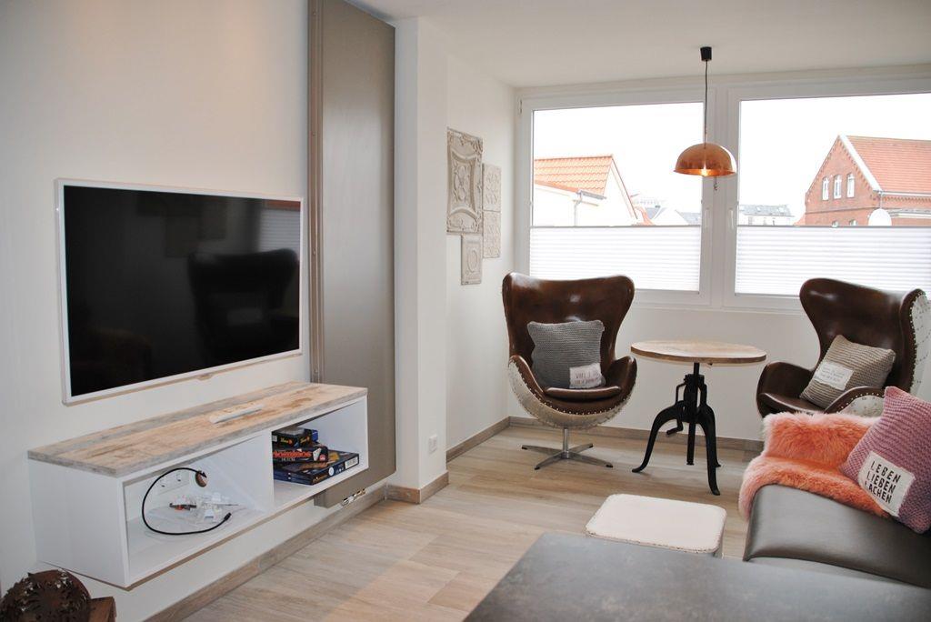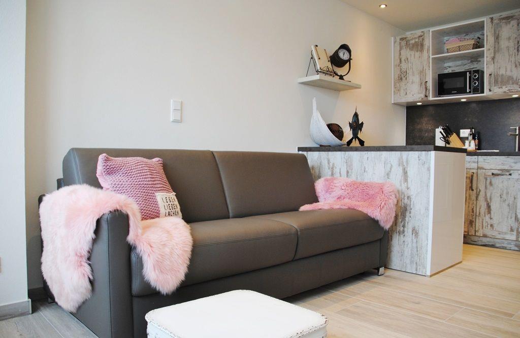 Das 1-Raum-Appartement in der 2. Etage (Aufzug im Haus) verfügt über einen Wohn-/ Schlafraum mit integrierter Küchenzeile (Mikrowelle, 2-Platten-Ceranfeld, Gefrierfach). Die Wohnung ist mit hochwertigen, modernen Möbeln ausgestattet, sodass ein gemütliches Ambiente entsteht. Die innovative Schlafcouch ist ausgestattet mit Kaltschaum-Matratze und Lattenrost, sodass höchster Schlafkomfort für bis zu zwei Personen gewährleistet wird. Als zusätzliche Sitzgelegenheiten sind zwei Lounge Sessel eingebracht. Das neue Duschbad mit WC bietet eine ebenerdige Dusche. Kostenloses WLAN.