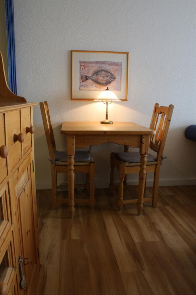 Das Appartement 8 in der 1. Etage verfügt über ein separates Schlafzimmer mit zwei Einzelbetten, neues Badezimmer mit Dusche/WC (2023 renoviert), Wohnraum mit Schlafsofa (nur für 1 Kind geeignet!), Küchennische (4-Plattenherd, Backofen, Kühlschrank mit 2*Gefrierfach) und TV. Der nächste Strandaufgang ist in einer Gehminute zu erreichen. Der Balkon hat seitliche Seesicht.