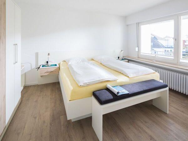 Die Dünenrose 40 liegt sehr ruhig und strandnah (Nordstrand). Sie hat zwei große Räume mit jeweils einem Balkon nach Westen (Nachmittagssonne) und bietet auf 65 qm sehr viel Platz. Die Wohnanlage besitzt ein Schwimmbad mit Münzsauna, großzügigen Grünflächen und ist durch einen eigenen Hausmeister sehr gepflegt. Die 2 Zimmer sind modern eingerichtet, im Wohn- und Schlafzimmer steht jeweils ein TV in LCD-Qualität. Im Schlafzimmer gibt es 1 großes Doppelbett jeweils 2m x 1m (Länge/Breite), einen Kleiderschrank und eine Kofferablage.