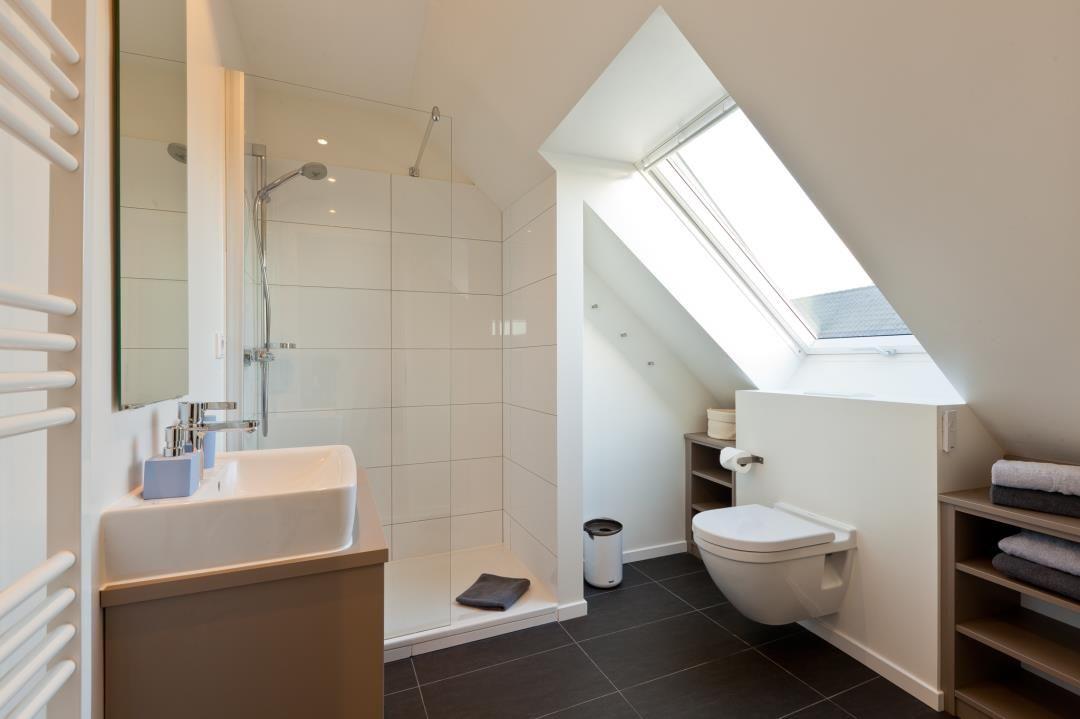Das große Schlafzimmer ist mit komfortablem Doppelbett, TV und Einbauschränken ausgestattet. Das zweit Schlafzimmer verfügt über zwei niedrige Einzelbetten, die sich zu einem Doppelbett zusammenschieben lassen. Ein Highlight ist das Turmzimmer, das ein zusätzliches fünftes Bett bietet. Diese Anpassung sorgt für noch mehr Schlafkomfort und Flexibilität. Die beiden Bäder, eins mit Wanne und eins mit Dusche, versprechen Wellness und Entspannung. Hier können Sie nach einem erlebnisreichen Tag auf der Insel regenerieren und neue Energie tanken.