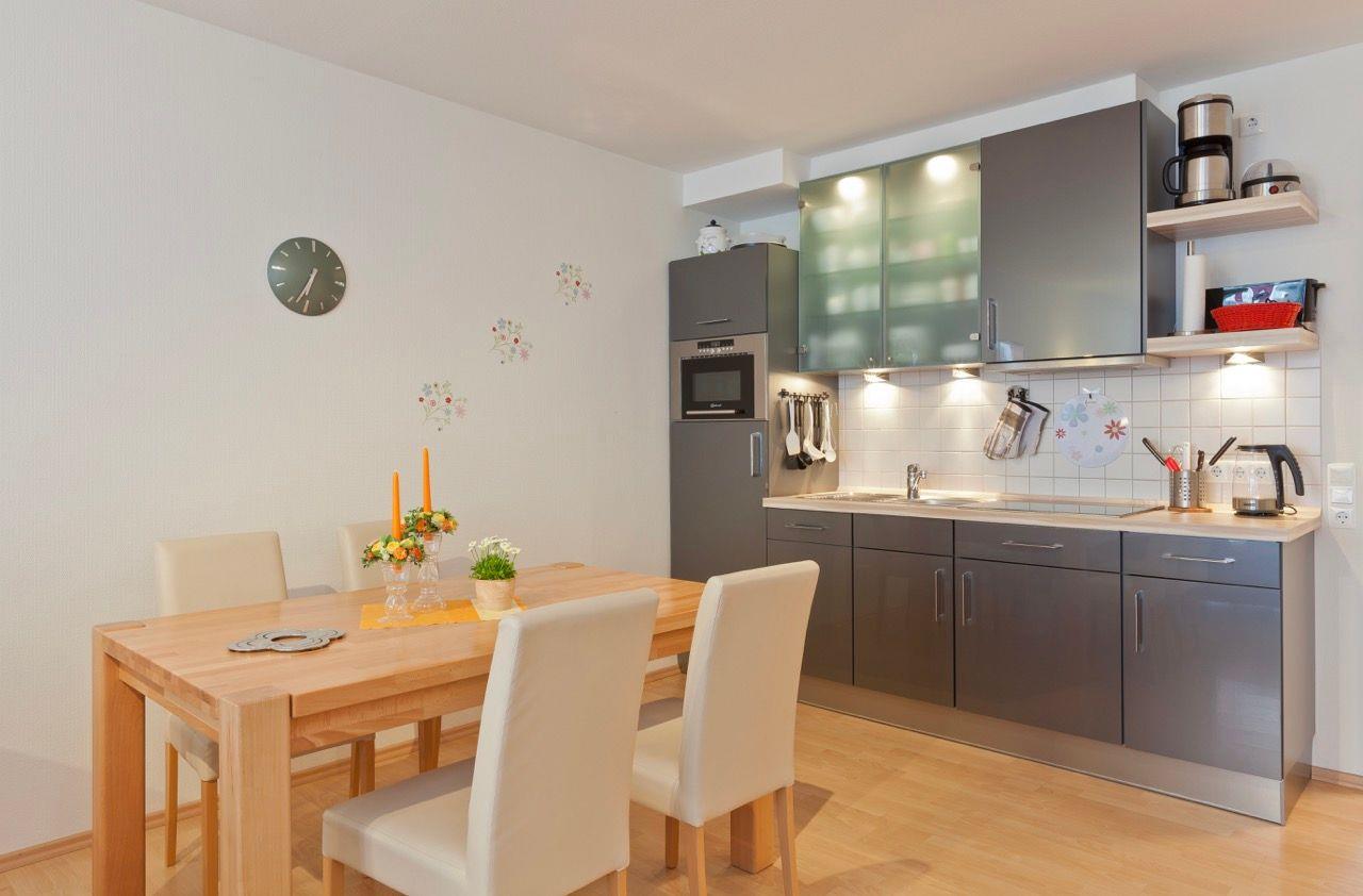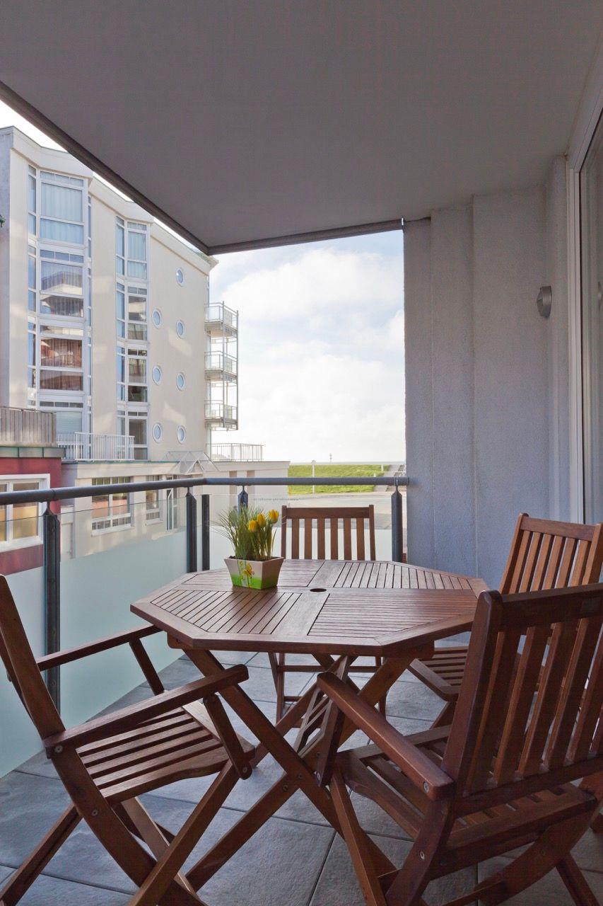 Die voll ausgestattete Küche lässt keine Wünsche offen. Neben einem Ceranherd inkludiert sie auch eine Spülmaschine, eine Mikrowelle, einen Kühlschrank sowie eine Kaffeemaschine. Bereiten Sie köstliche Mahlzeiten zu und genießen Sie diese am Esstisch oder auf dem überdachten Balkon mit eingeschränktem Meerblick. Hier können Sie morgens bei einem Kaffee die frische Meeresbrise schnuppern und den Tag entspannt starten.
