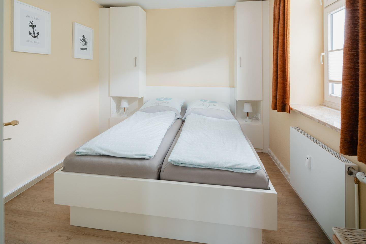 Die Ferienwohnung verfügt über ein gemütliches Schlafzimmer, das zum Entspannen einlädt. Das Badezimmer ist mit einer bodengleichen Dusche, einem Waschbecken und einem WC ausgestattet und hält einen Haartrockner sowie Handtücher für Sie bereit.