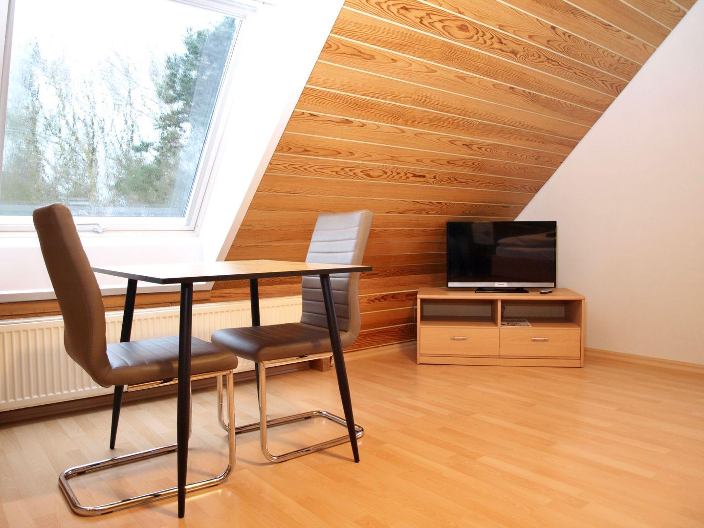 Diese charmante 1-Zimmer-Dachwohnung mit ca. 25 m² befindet sich im 2. Obergeschoss und strahlt durch die schrägen Wände eine gemütliche Atmosphäre aus. Trotz ihrer kompakten Größe ist sie ideal für einen entspannten Aufenthalt zu zweit.