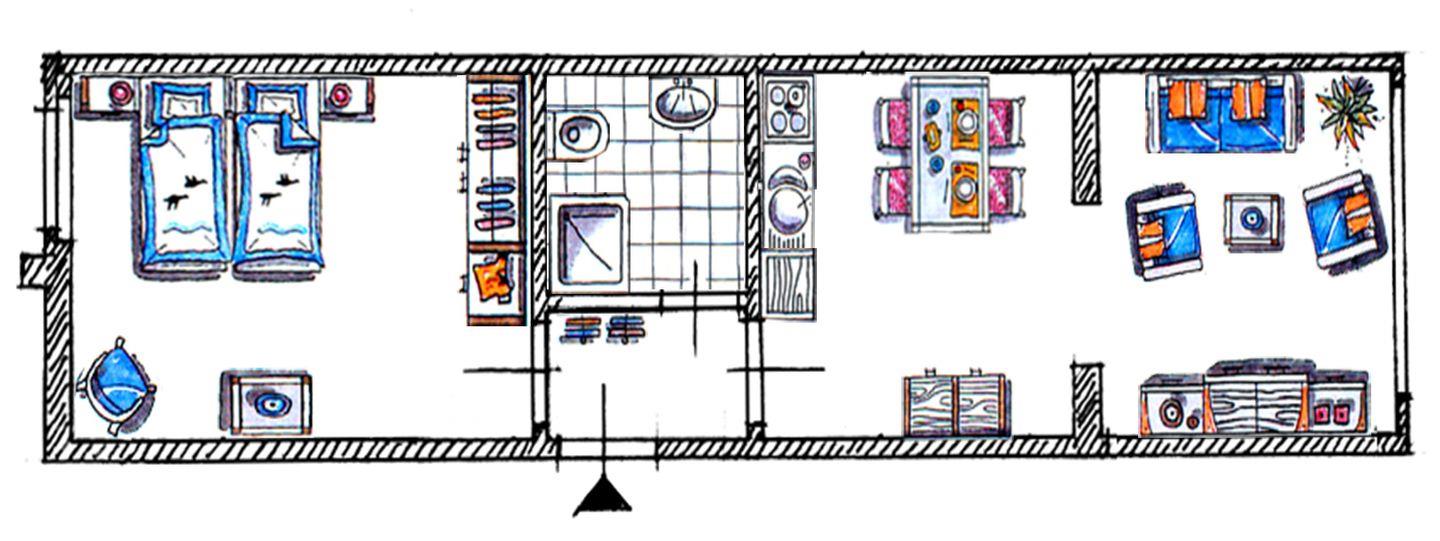 Diese komfortable eingerichtete 2-Raum-Wohnung im Erdgeschoss nimmt mit Ihren 45m² bis zu 3 Personen ideal auf.