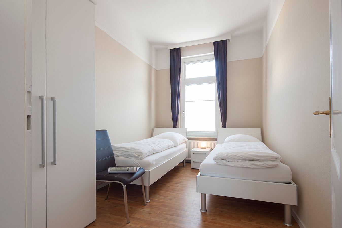 Das zweite Schlafzimmer verfügt über zwei Einzelbetten (je 90 x 2,00 m), die auch getrennt stehen – ideal für Kinder oder Freunde.