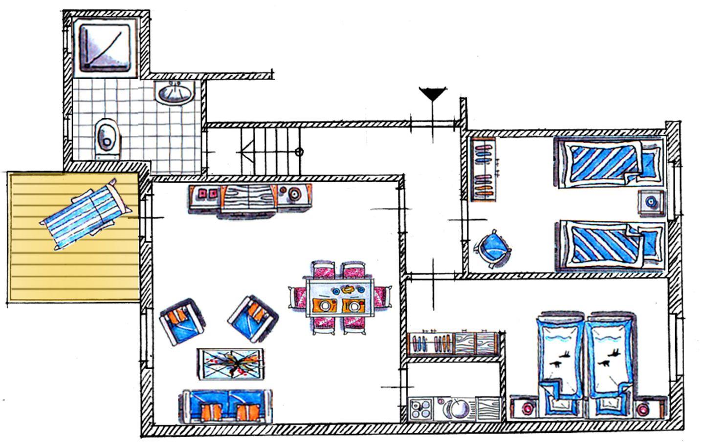 Diese gemütliche 3-Raum-Ferienwohnung liegt im 2. Obergeschoss und nimmt mit Ihren 70m² bis zu 4 Personen ideal auf.